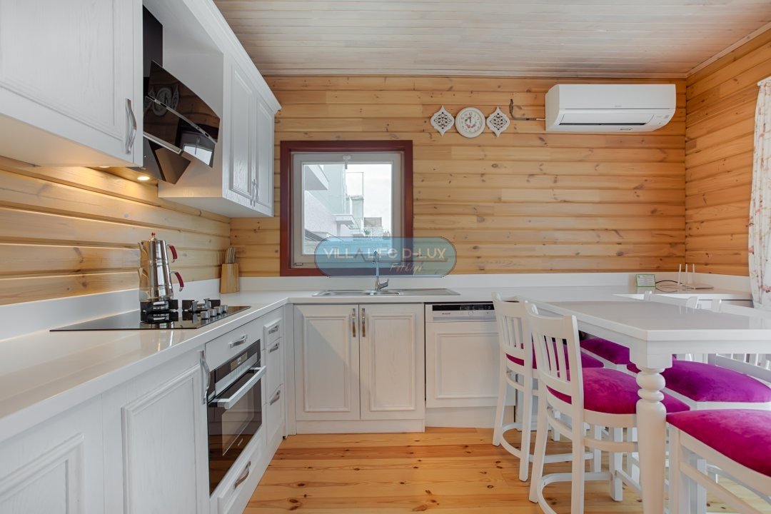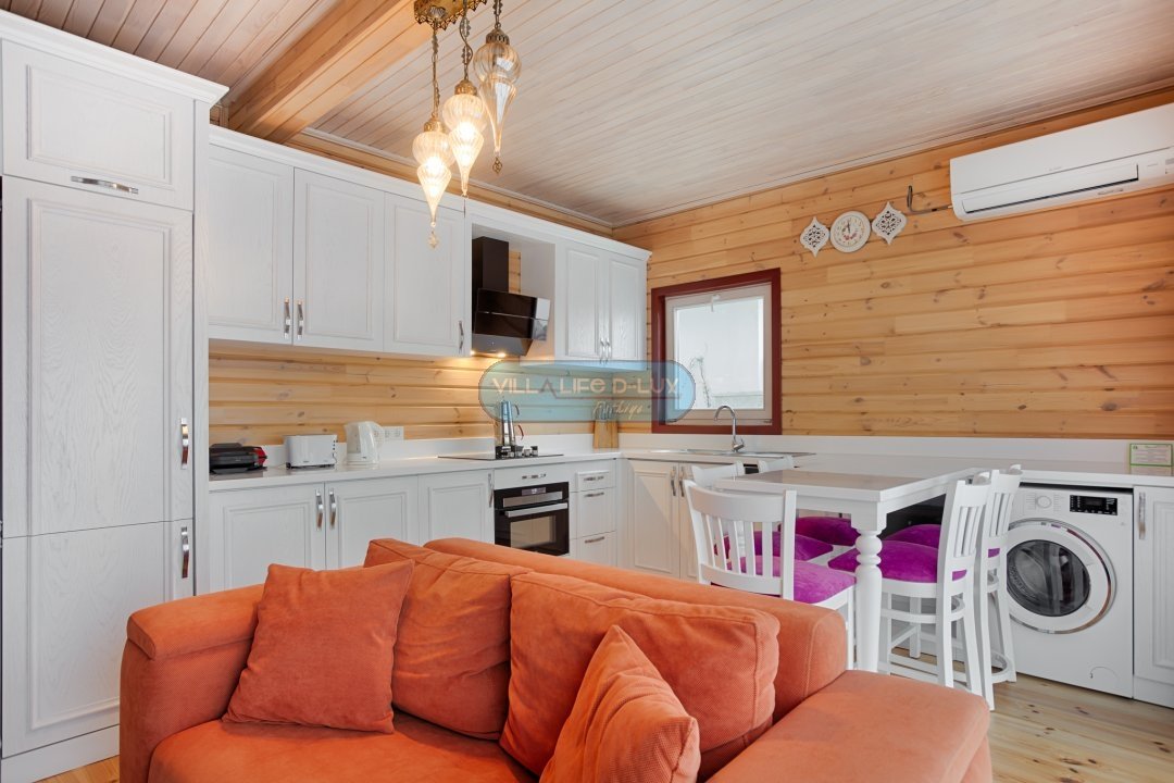 Mutfak; Modern Amerikan Mutfak, bulaşık makinesi, çamaşır makinesi, buzdolabı, 4‘lü ocak, fırın, elektrikli su ısıtıcı (kettle), tencere, tavalar, 2 kişilik yemek takımı, çatal bıçak takımı, çay, kahve ve su bardakları mevcuttur.