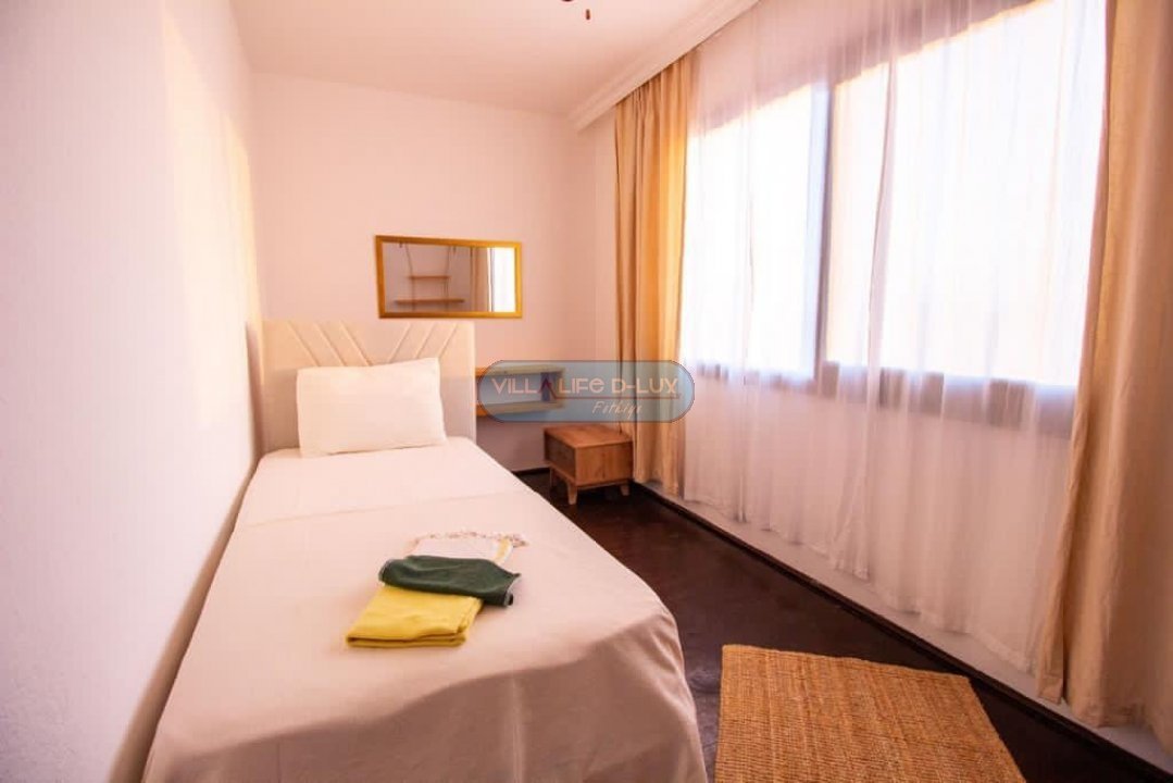 Villa Ephesus, doğa güzelliği ve tarihi kalıntılarıyla meşhur tatil beldemiz Ölüdenizin Faralya bölgesinde bulunmaktadır. Villamızın büyüleyici bir deniz manzarası vardır. 5 yatak odası, 3 banyosu, 6 kişilik kapasitesi bulunan, 2020 sezonunda yeni hizmete sunulmuş olan villamızın oldukça geniş güneşlenme terası ve bahçesi, yaklaşık 50 m2’lik çatı terası ve ferah bir yüzme havuzu bulunmaktadır. Kalabalık aileler ve arkadaş grupları, gözlerden uzak sakin bir villa tatili isteyen misafirlerimiz için oldukça ideal bir villadır. Villamız Ölüdeniz merkeze 10 km. mesafededir. Not : Villa Ephesus’da bebek yatağı mevcuttur. Not : Villa Ephesus 1 ve Villa Ephesus 2, yan yana konumlu villalardır. Birlikte 2 villa kiralamak isteyen aileler için ideal bir tatil villasıdır. Salon : Geniş ve konforlu oturma grubu, uydu alıcı, LCD TV, klima, banyo/WC ve internet için modem bulunmaktadır. Mutfak : İçerisinde buzdolabı, bulaşık makinesi, çamaşır makinesi, ankastre fırın, ankastre 4’lü ocak, elektrikli su ısıtıcısı, çay makinesi, 10 kişilik yemek takımı, tava, tencereler, çatal, bıçak takımı bulunmaktadır. Havuz : Deniz manzaralı özel yüzme havuzu bulunmaktadır. Havuz boyutları; uzunluk 7 m metre, genişlik 3.50 metre, derinlik 1.50 metredir. Havuz ve bahçe bakımı günde 1 kez sabah veya akşam yapılmaktadır. Havuz kenarında güneşlenme terası vardır. Bahçe : Deniz manzaralı bahçede, 4 adet şezlong, güneş şemsiyesi, sedir, hamak, barbekü, 8 kişilik yemek masası ve sandalyeler bulunmaktadır. Yatak Odaları: : Villamızda 5 adet yatak odası bulunmakta olup tüm odalarda serinleme için tepe vantilatörü bulunmaktadır. 1. Yatak Odası : Genç yatak odası olup, 2 adet tek kişilik yatak, kıyafetleriniz için duvarda raflar, tepe vantilatörü, lambader ve ORTAK KULLANIM banyo/WC bulunmaktadır. (Giriş katı) 2. Yatak Odası : Aile yatak odası olup, 1 adet çift kişilik yatak, kıyafetleriniz için duvarda raflar, tepe vantilatörü, ayna ve ORTAK KULLANIM banyo/WC bulunmaktadır. (1. kat) 3. Yatak Odası : Aile yatak odası olup, 1 adet çift kişilik yatak, kıyafetleriniz için duvarda raflar, tepe vantilatörü, ayna ve ORTAK KULLANIM banyo/WC bulunmaktadır. (1. kat) 4. Yatak Odası : Genç yatak odası olup, 1 adet tek kişilik yatak, kıyafetleriniz için duvarda raflar, tepe vantilatörü ve ORTAK KULLANIM banyo/WC bulunmaktadır. (1. kat) 5. Yatak Odası : Suit Aile yatak odası olup, 1 adet çift kişilik yatak, kıyafetleriniz için duvarda raflar, tepe vantilatörü, lambader, banyo/WC ve terasa çıkış bulunmaktadır. (Çatı katı) İnternet : Villada Wi-Fi bulunmaktadır. Bölgenin alt yapısı sebebiyle internet servis sağlayıcılarından kaynaklanan kesitiler yaşanabilmektedir. İnternet kullanımı; mailler, sosyal medya hesapları, gazete ve haber sitelerine girme gibi hususlarda yeterli olup film ve video izleme, dosya indirme gibi kullanımda yeterli değildir. Ekstralar : Villamızda internet bulunmaktadır. Villa temiz bir şekilde teslim edilmektedir. Villa temizliği ise haftada 1 kez yapılmaktadır. Önemli Bilgiler : Elektrik, su, gaz ücretleri villa kiralama fiyatına dahildir. Ayrıca bir ücret talep edilmemektedir. Ekstra temizlik, ekstra yeni çarşaf ve havlu, kiralık araç, rehberlik hizmetleri, sağlık vs. sigortaları fiyatlara dahil değildir. Doğa içerisinde konuma sahip olan tüm villalarımızda düzenli olarak ilaçlama yapılmaktadır. Buna rağmen çevrede; kelebek, böcek, sinek vs. bulunma ihtimali vardır. Faralya; coğrafi yapısı bakımından, yamaç üzerine kurulmuş bir yerleşim yeridir. Faralya ve çevresindeki köylerde bulunan tüm yazlıklarımıza ulaşmak için, yokuş yukarı çıkılmaktadır. Faralya Köyü sakin bir yerleşim yeridir. (Köydür) Villamız 6 kişi kapasitelidir. Su,elektrik kullanımı, giriş temizliği, havuz ve bahçe bakımı fiyata dahildir. Fiyatlar konaklama tarihine göre değişiklik gösterebilir.Lütfen güncel fiyatlar için bizimle iletişime geçiniz. Hasar Depozitosu: Villaya girişte hasar, zayi, kırık, dökük vb. için nakit olarak 2000 TL hasar depozitosu alınacaktır. Herhangi bir sıkıntı olmadığı takdirde villa çıkışında hasar depozitosu nakit olarak iade edilecektir. Not: Evcil hayvanları çok seviyoruz ama maalesef hijyen ve alerjik durumdan dolayı kabul edemiyoruz