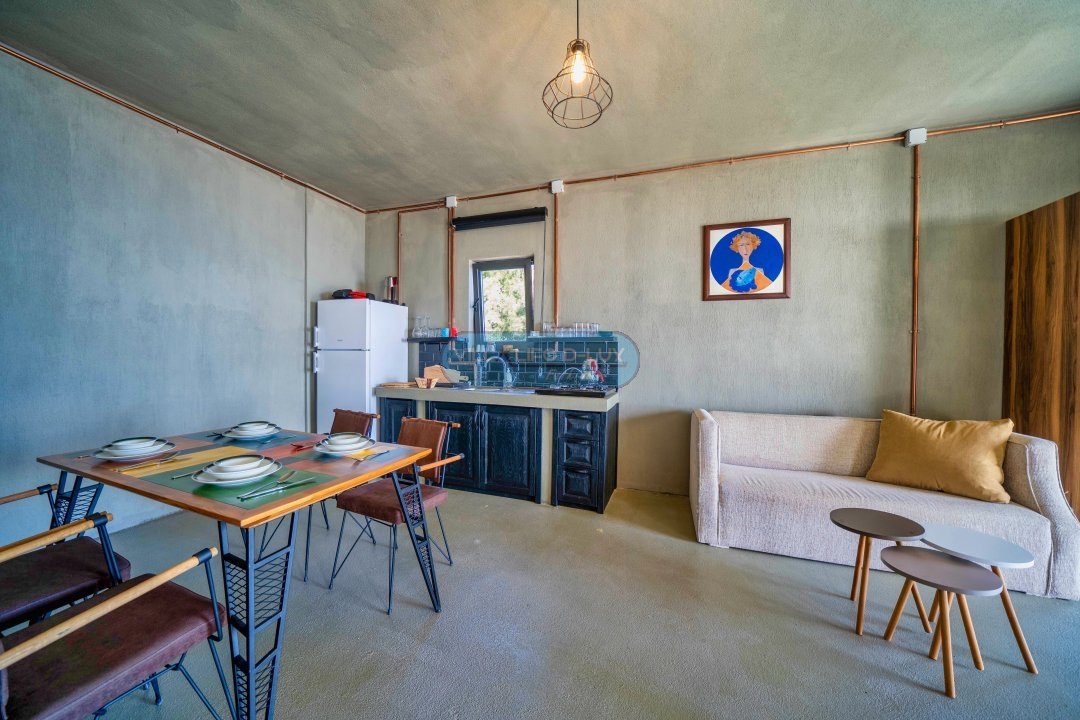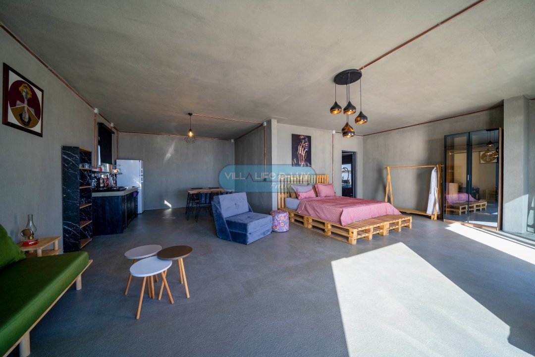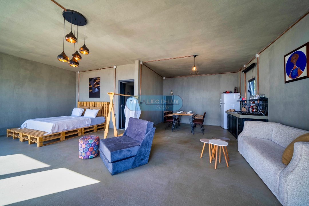 1. Yatak Odası: Bir oturma odası ve bir açık mutfak vardır. 1 adet çift kişilik yatak, gardırop, komodin, ebeveyn banyo ve oturma odası bulunmaktadır.