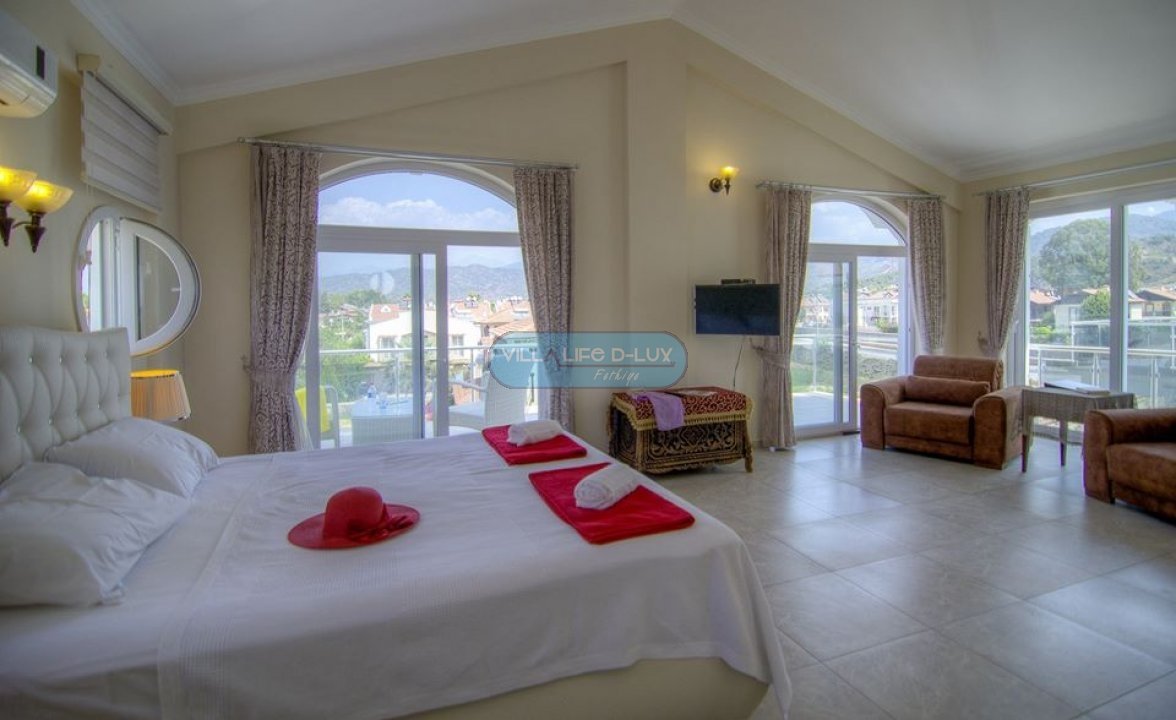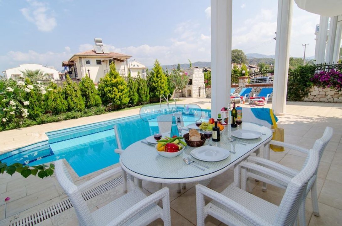 Salon; Modern tasarımlı, özenle dizayn edilmiş salonda şık ve rahat bir oturma grubu, yemek masası ve sandalyeler, televizyon, uydu alıcı, klima bulunmaktadır. Salondan havuz kenarına direkt çıkış bulunmaktadır.