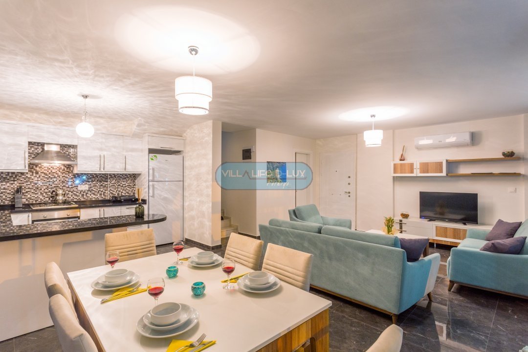 Tatil boyunca tüm ihtiyaçlarınızı karşılayacak beyaz eşya, her odada klima, mutfak araç gereçleri, mobilya, yatak, havlu, çarşaf, ütü ve ütü masası bulunmaktadır.