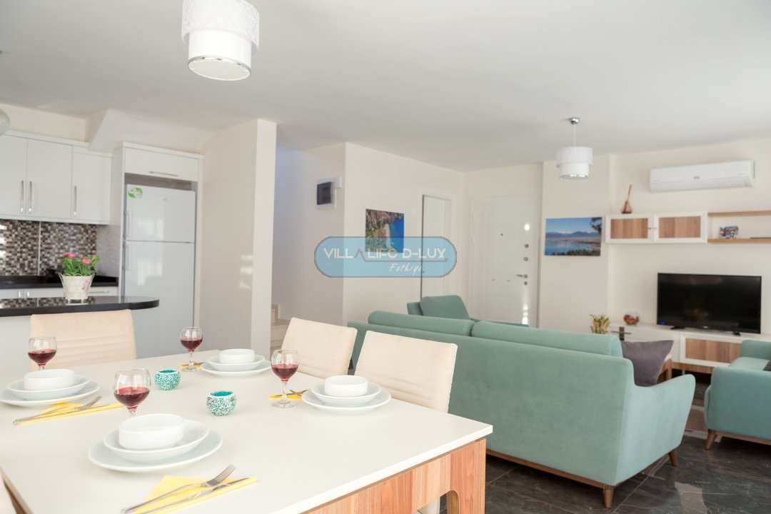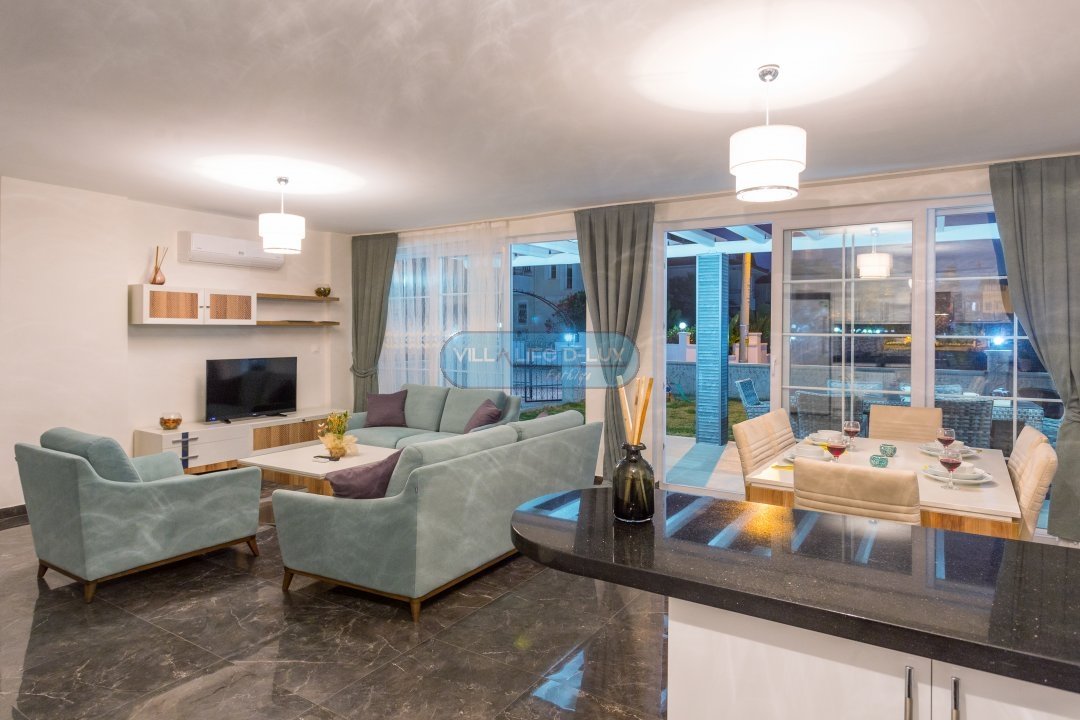 Salon: Oturma grubu, LCD TV, 6 kişilik yemek masası, Klima,