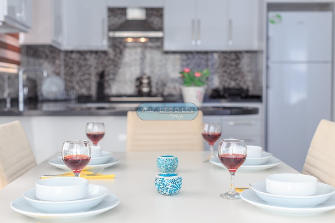 Mutfak:Buzdolabı, Çamaşır makinesi, Bulaşık makinesi, Fırın, 4’lü ocak, Elektrikli su ısıtıcı, Tost makinası, 12 kişilik yemek takımı, Tava, Tencere ve Çatal bıçak takımı bulunmaktadır.