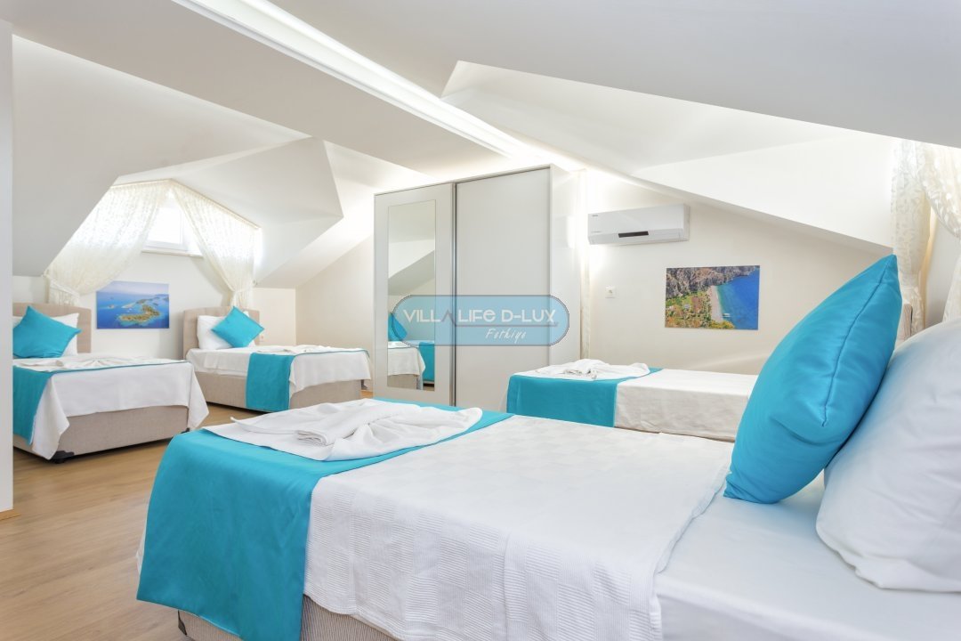 3. Yatak Odası (Teras Kat ): 4 Adet tek kişilik yatak, Komodin, Klima, Elbise dolabı ve banyo tuvalet