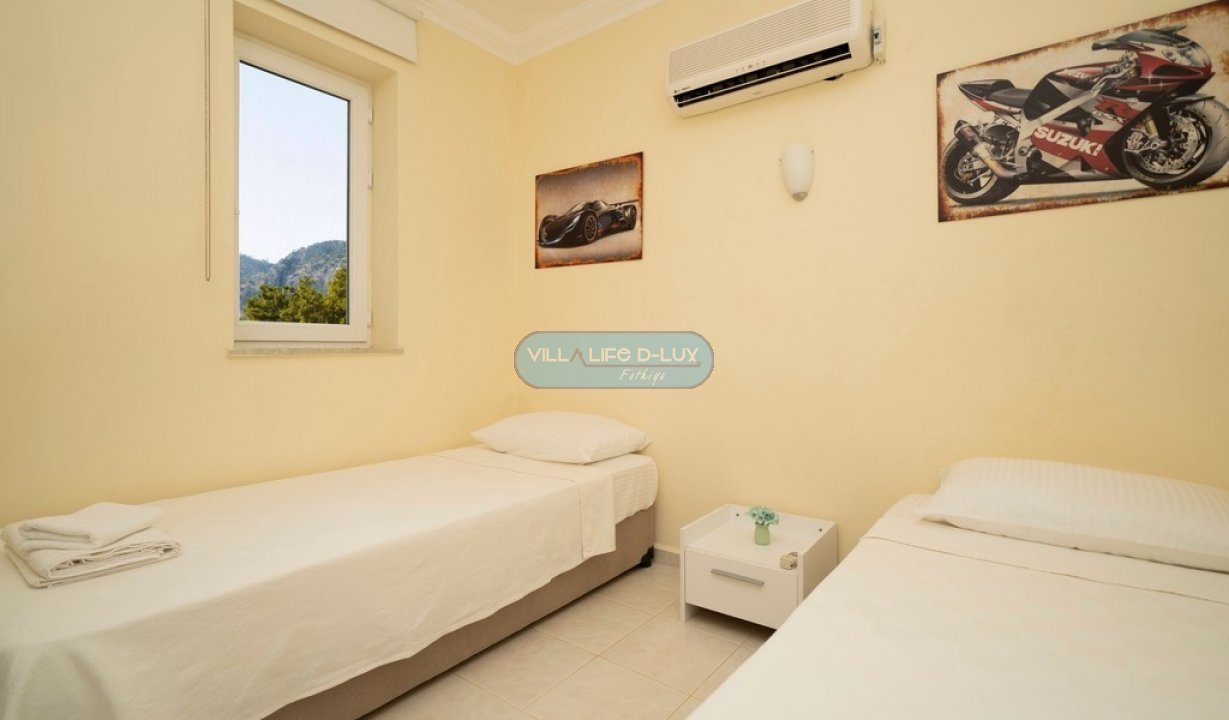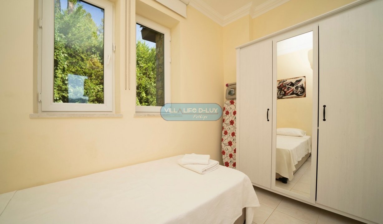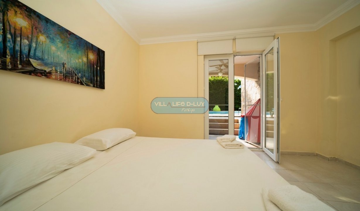 Villa Beren, doğa güzelliğiyle ünlü Fethiyenin Göcek bölgesinde bulunmaktadır. Villamız 5 yatak odalı, 5 banyolu, 10 kişi kapasitelidir. Villamızın kendisine ait özel havuzu ve bahçesi bulunmaktadır. Villamız tam donanımlı mobilyalıdır. Villamız doğa manzaralıdır. Doğa güzelliğinin içinde keyifli, konforlu bir tatil için villamız sizi bekliyor. Salon; Modern tasarımlı, özenle dizayn edilmiş salonda şık ve rahat bir oturma grubu , yemek masası ve sandalyeler , televizyon , uydu alıcı, klima bulunmaktadır. Mutfak; Modern Amerikan mutfakta buzdolabı, çamaşır makinesi ,bulaşık makinesi, fırın, ankastre 4′lü ocak, elektrikli su ısıtıcısı, yemek takımı, çaydanlık, çatal bıçak seti , tavalar, tencereler , bardaklar bulunmaktadır. Havuz; Tamamen villada konaklayacak olanlara ait özel yüzme havuzu bulunmaktadır. Bahçe; Havuz başında güneşlenme terası, şezlong ve şemsiyeler, mangal bulunmaktadır. Yatak Odaları 1. Yatak Odası: 1 Çift kişilik yatak, elbise dolabı, komodin, klima, ebeveyn banyosu ve balkon bulunmaktadır. 2. Yatak Odası: 1 Çift kişilik yatak, elbise dolabı, komodin, klima, ebeveyn banyosu ve balkon bulunmaktadır. 3. Yatak Odası: 1 Çift kişilik yatak, elbise dolabı, komodin, klima, ebeveyn banyosu ve balkon bulunmaktadır. 4. Yatak Odası: 1 Çift kişilik yatak, elbise dolabı, komodin, banyo, klima, balkon bulunmaktadır. 5. Yatak Odası: 2 tek kişilik yatak, elbise dolabı, komodin, banyo, klima bulunmaktadır. Villamız 10 kişi kapasitelidir. Su, elektrik kullanımı, giriş temizliği, havuz ve bahçe bakımı fiyata dahildir. Fiyatlar konaklama tarihine göre değişiklik gösterebilir. Lütfen güncel fiyatlar için bizimle iletişime geçiniz. Hasar Depozitosu: Villaya girişte hasar, zayi, kırık, dökük vb. için nakit olarak 1000 TL hasar depozitosu alınacaktır. Herhangi bir sıkıntı olmadığı takdirde villa çıkışında hasar depozitosu nakit olarak iade edilecektir. Not: Evcil hayvanları çok seviyoruz ama maalesef hijyen ve alerjik durumdan dolayı kabul edemiyoruz