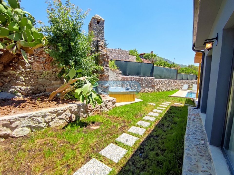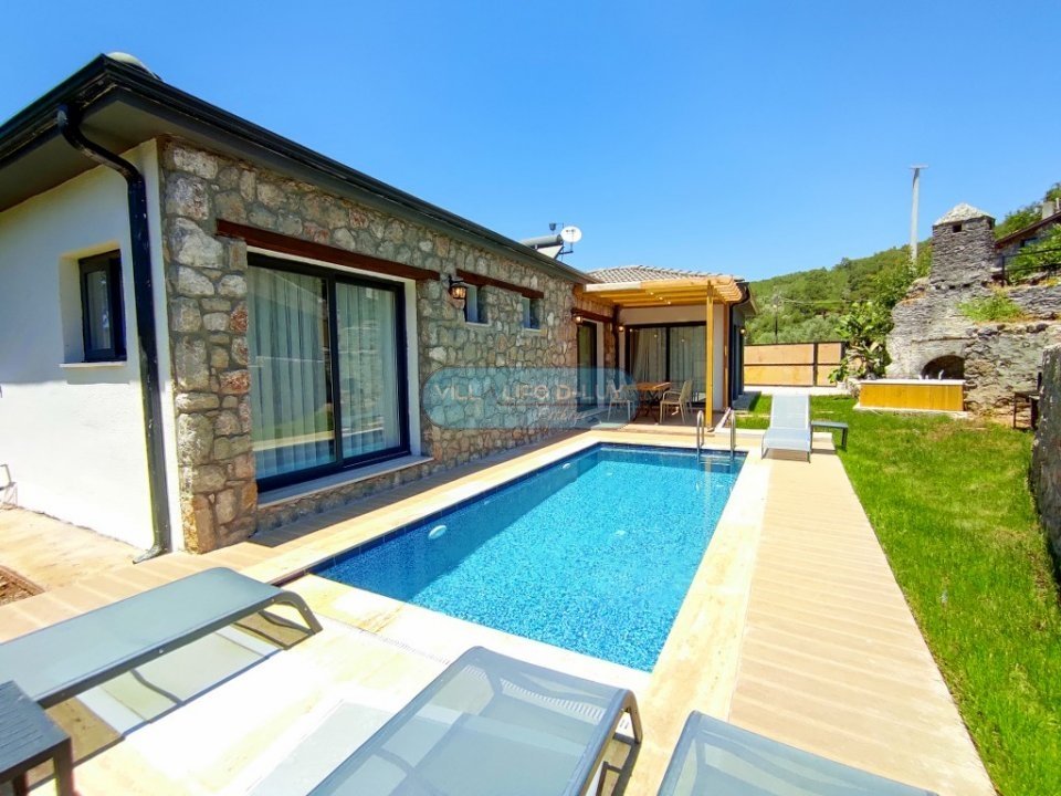 Villamız 2021 senesinde tamamlanmış olup ilk defa misafirlerine kapılarını açmaktadır. Villa Antik Kayaköy 2 yatak odalı, 2 ebeveyn banyosu ve 1 wc ye sahiptir. Villamız müstakil havuzlu olup kullanımı sadece size aittir. Havuz başında bulunan jakuzide tarihin ve doğanın manzarası ile keyfinizi sürdürebilirsiniz. Havuz başın aynı zamanda mangal ve sınırsız internet mevcuttur. Bir mutfakta olması gerek tüm donanımlar mevcuttur. Salonda Smart TV vardır. Tüm odalar klimalıdır.