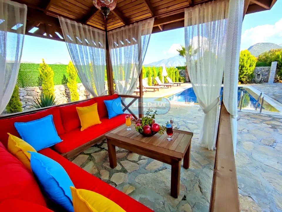 Salon; Modern tasarımlı, özenle dizayn edilmiş salonda şık ve rahat bir oturma grubu, yemek masası ve sandalyeler, televizyon, uydu alıcı, klima bulunmaktadır. Salondan havuz kenarına direkt çıkış bulunmaktadır.