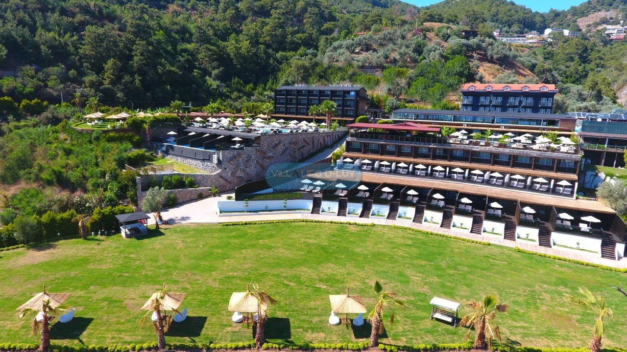 Otelimiz, Deniz Manzaralı bir konumda olup, otantik mimarisi ahşap ve doğal taş ile doğaya uyum sağlamıştır. Tesisimizde Resepsiyon, Ana Restoran ve Bar Bölümleri, Mini Market ve geniş bahçe alanı bulunmaktadır. Kapalı Ana Restoran, Teras Snack Restoran, Pool Bar ve Garden Bar olarak hizmet verilmektedir. Havuz alanlarımızın, Pool Bar ve Garden Bar bölümlerimizin zeminleri ahşap deck ile döşenmiştir. Gün içinde animasyon ve Gece şovları hizmeti verilen otelde, İnternet hizmeti ücretsiz olarak sağlanmaktadır. Ayrıca belirlenmiş saatlerde tesise ait özel plaja ulaşım hizmeti verilmektedir. Otelimiz bünyesinde 2 adet yüzme havuzu, bulunmaktadır. Sağlık Hizmetleri ücretli olup 24 saat ulaşılabilir durumdadır. Fethiye’nin ölüdeniz bölgesinde bulunan, bir tarafında yamaç paraşütü ile ünlü Baba Dağı ve diğer tarafında dünyaca ünlü ölüdeniz manzarası ile 15,000 m2’lik geniş bir alanda konumlandırılmış ve konuklarına dinlenmenin, eğlencenin keyfini kaliteli hizmet anlayışıyla sunan bir oteldir.