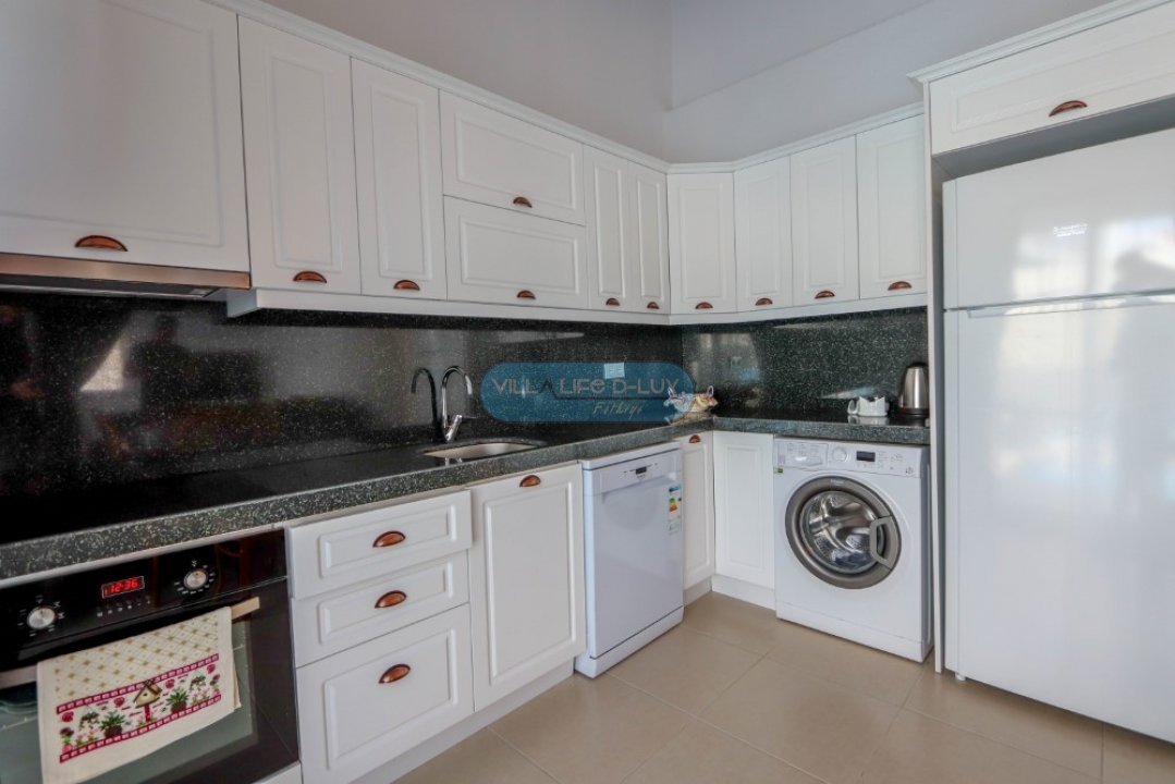 Mutfak; Modern Amerikan mutfakta buzdolabı, çamaşır makinesi, bulaşık makinesi, fırın, ankastre 4′ lü ocak , elektrikli su ısıtıcısı, yemek takımı, çaydanlık, çatal bıçak seti, tavalar, tencereler, bardaklar bulunmaktadır.