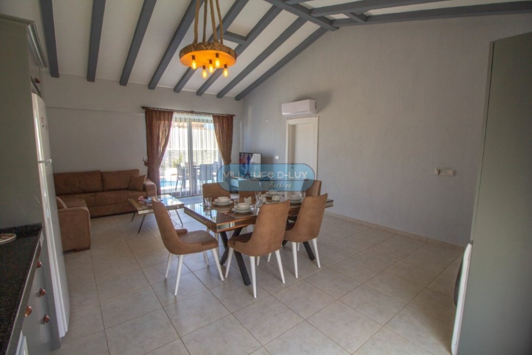 Taş ve ahşap yapıdan oluşmakta olan villamızın içerisi ultra lüks hazırlanmış olup villamız 1 oda 1 açık plan mutfak şeklinde dizayn edilmiştir. Villamızın kendine ait 40m² özel havuzu bulunmaktadır. Havuzun derinliği 1.40cm-150cm aralığında eğimlidir. Havuzumuzun etrafı branda sistemiyle kapalı olup ailenizle rahatlıkla havuz keyfi yapmanızı sağlar.