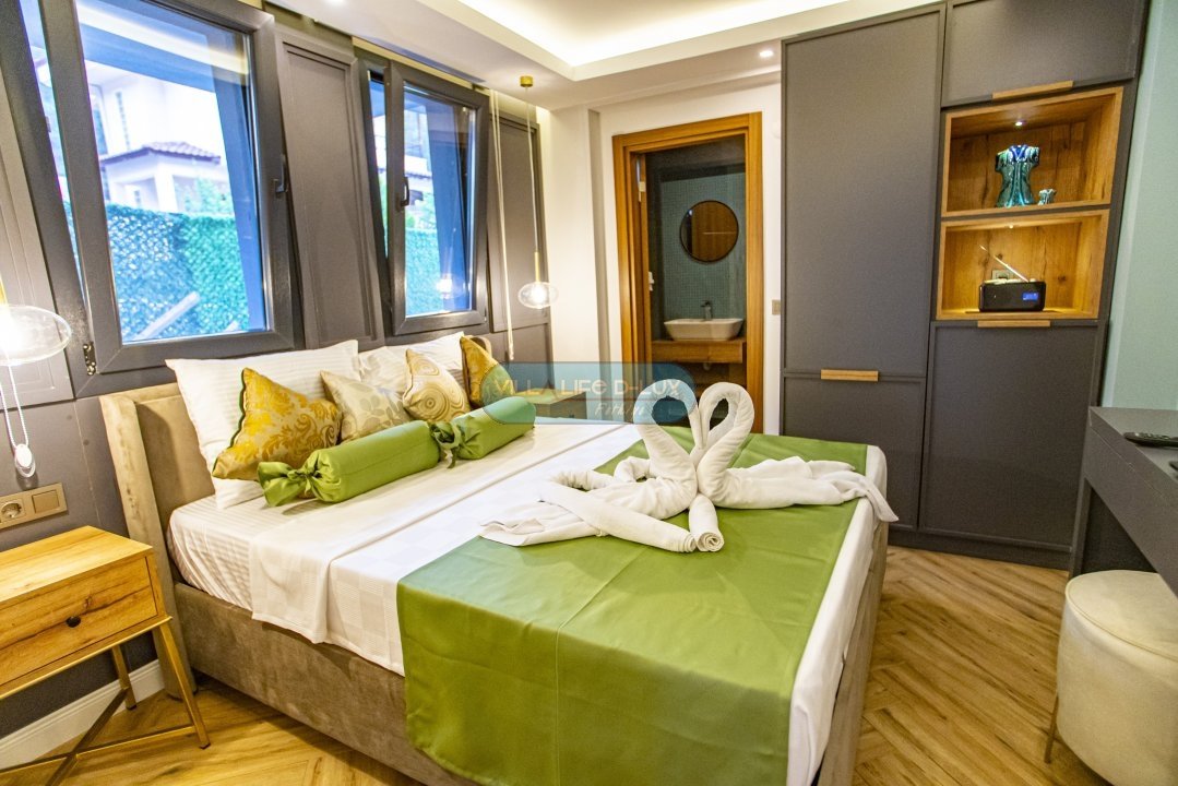 7.Yatak Odası: Çatı katında yer almaktadır. Ebeveyn banyolu oda, 2 adet tek kişilik yatak, elbise dolabı, komodin, buzdolabı, LCD TV, saç kurutma makinesi, emanet kasası ve klima bulunmaktadır.