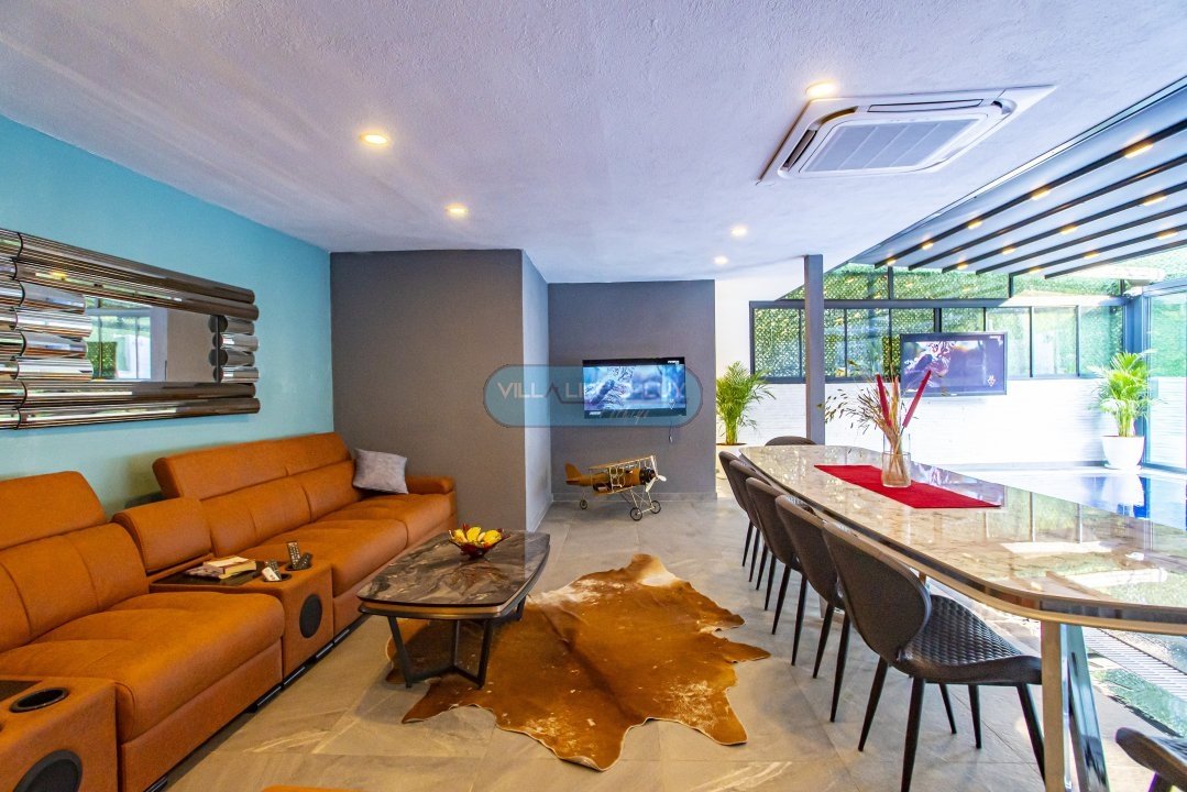 Salon: LCD TV, uydu alıcı, oturma grubu, klima, yemek masası ve sandalyeler bulunmaktadır. Havuz hemen salonun yan tarafında yer almaktadır.