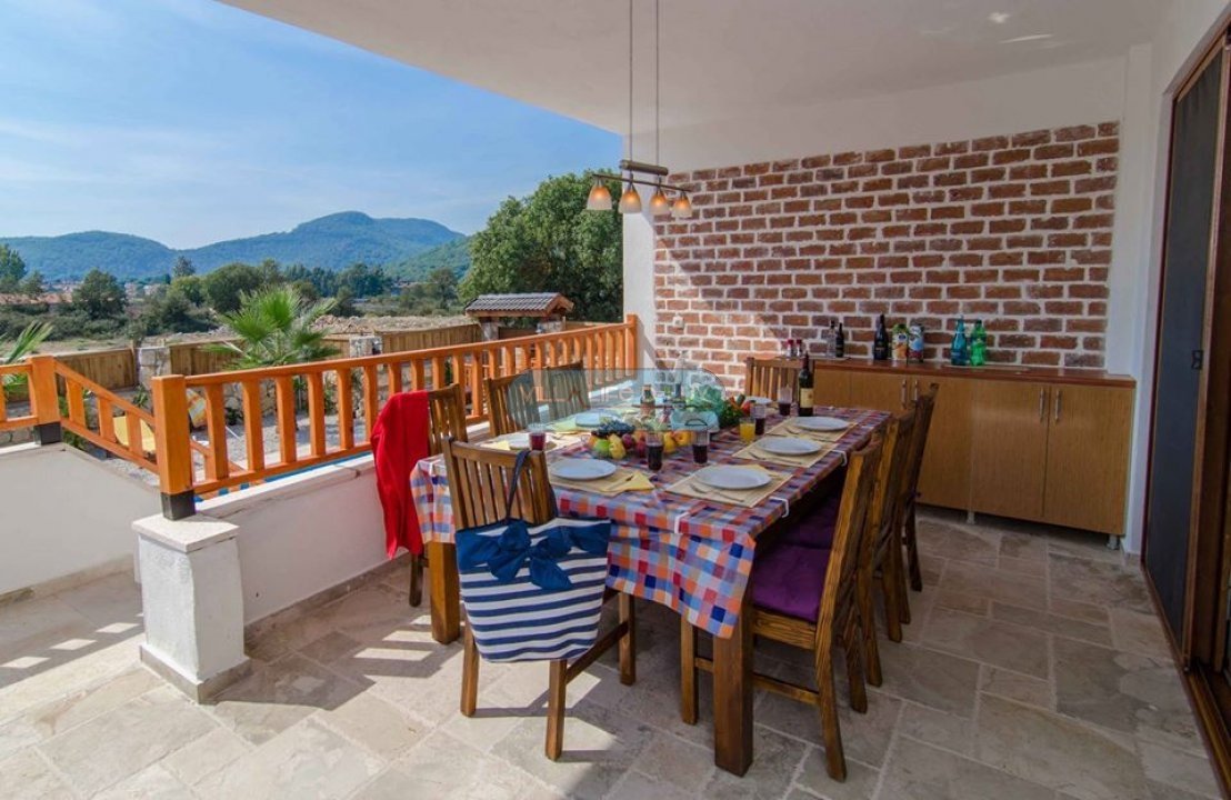 Villa Esinti Eşşiz doğası, tarih kokan güzelliğiyle en gözde tatil beldelerimizden Fethiyenin Ovacık Hisarönü mevkisinde bulunmaktadır. Villamız 5 yatak odası, 4 banyosu, 2 salonu ile sizlere konforlu, huzur veren, dağ manzarası ile unutulmaz bir tatilin kapılarını açıyor. Doğayla iç içe villamızın özel havuz ve bahçesi vardır. Bahçenizde leziz mangal keyfi, ferah balkonunuzda kahve keyfi sizleri bekliyor. Villamızdan aracınızla kısa sürede Hisarönü çarşına, denizi ve ince kumuyla meşhur Ölüdeniz Kumburnu Plajına ulaşabilir, Fethiyenin Kayaköy gibi tarihi kalıntılarını ziyaret ederek tarihi bir yolculuğa çıkabilirsiniz.