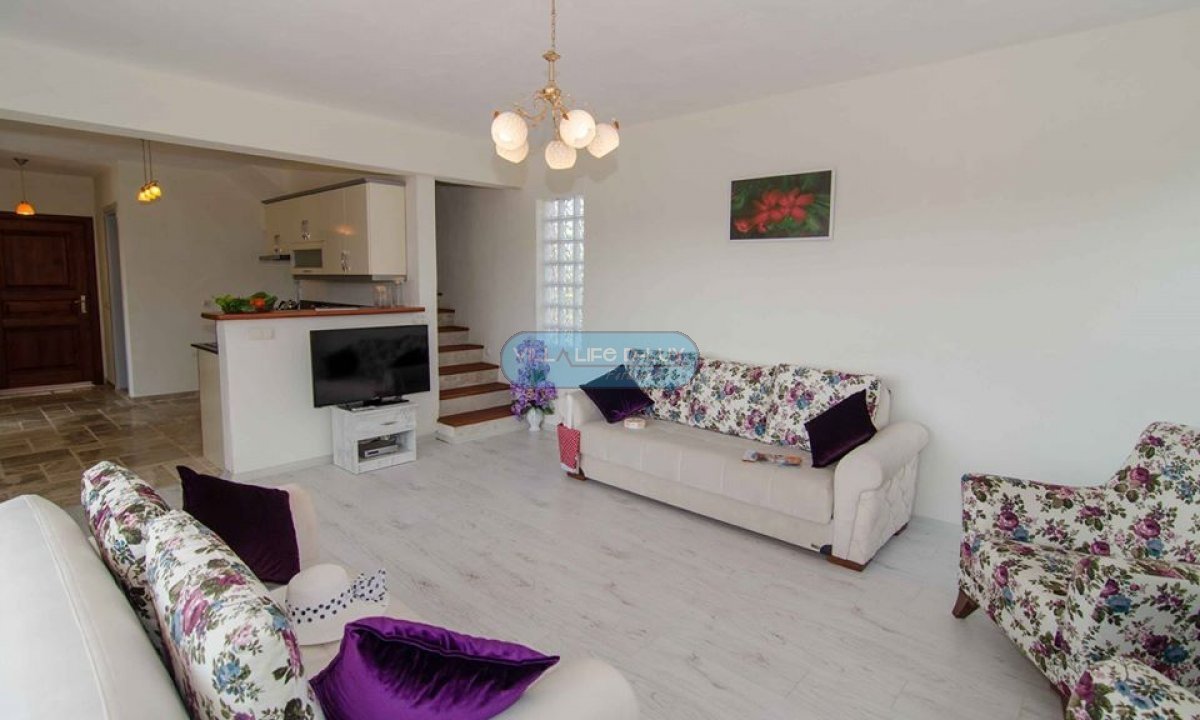 Salon; Modern tasarımlı, özenle dizayn edilmiş salonda şık ve rahat bir oturma grubu, yemek masası ve sandalyeler, televizyon, uydu alıcı, klima bulunmaktadır. Salondan havuz kenarına direkt çıkış bulunmaktadır.