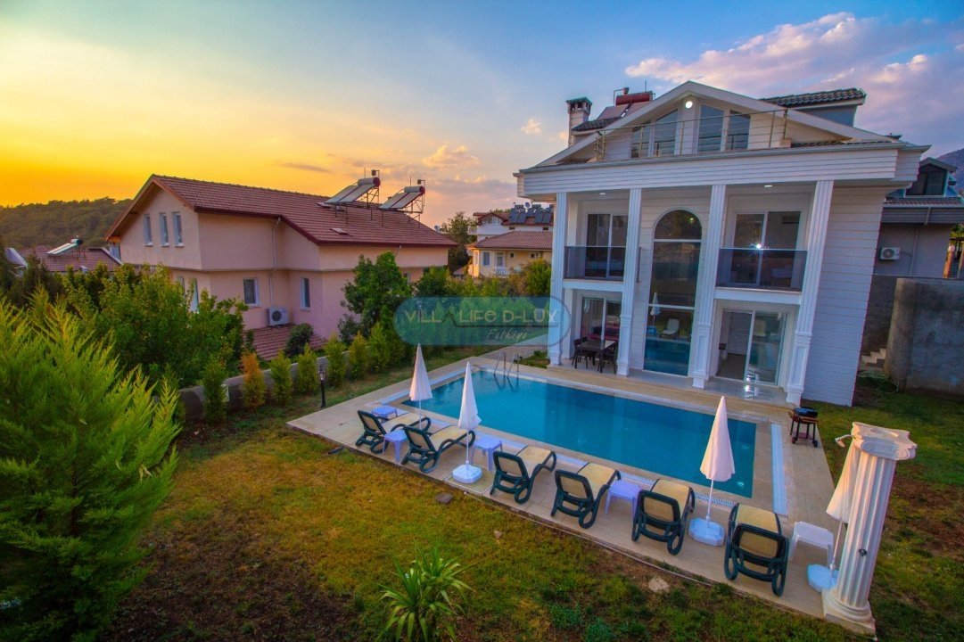 Bahçe: Oldukça geniş ve yeşil bir bahçe içerisinde özel havuz,havuz başı duş,6 adet şezlong, yeteri kadar şemsiye, yemek masası ve sandalyeler bulunmaktadır.
