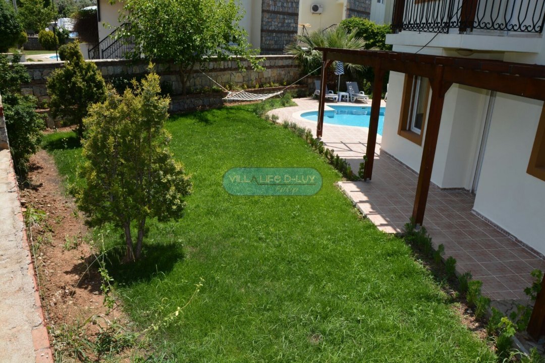 Bahçe; Havuz başında güneşlenme terası, şezlong ve şemsiyeler, mangal bulunmaktadır.