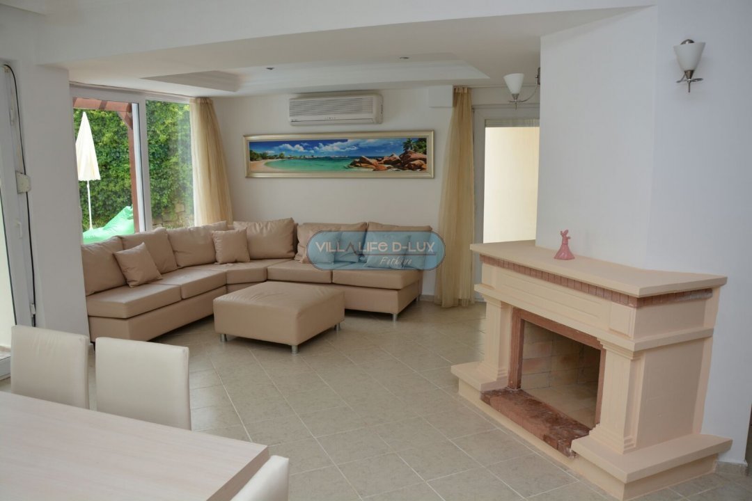 Salon; Modern tasarımlı, özenle dizayn edilmiş salonda şık ve rahat bir oturma grubu, yemek masası ve sandalyele, televizyon, uydu alıcı, klima bulunmaktadır. Salondan havuz kenarına direkt çıkış bulunmaktadır.