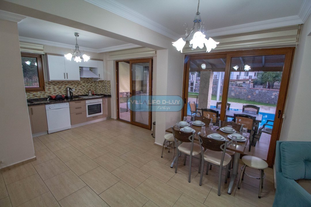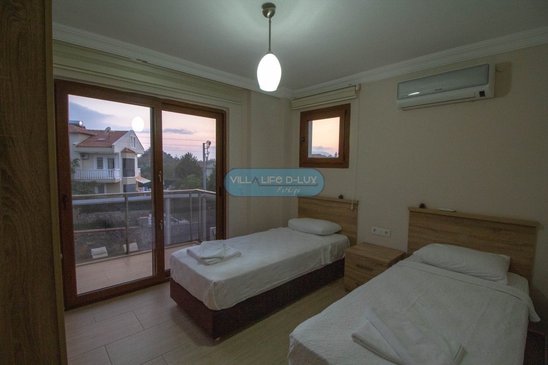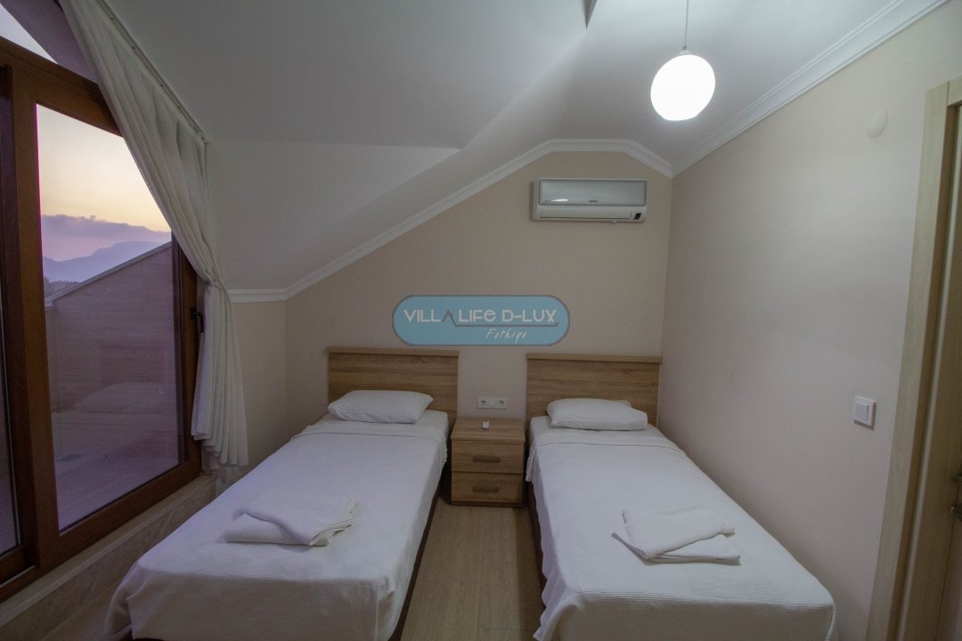 Villamızın içerisinde dört adet yatak odası ve dört adet banyo bulunmaktadır. Yatak odalarının iki tanesinde çift kişilik yataklar, diğer yatak odasında ise iki adet tek kişilik yatak bulunmaktadır. Tüm odaların içerisinde klima ve ebeveyn banyosu bulunmaktadır. Ortak alanda salon, mutfak, klima ve televizyon bulunmaktadır. Villamızın havuzu dışarıdan görünmemektedir. Bu özelliği ile muhafazakar aileler için uygun bir seçenektir.
