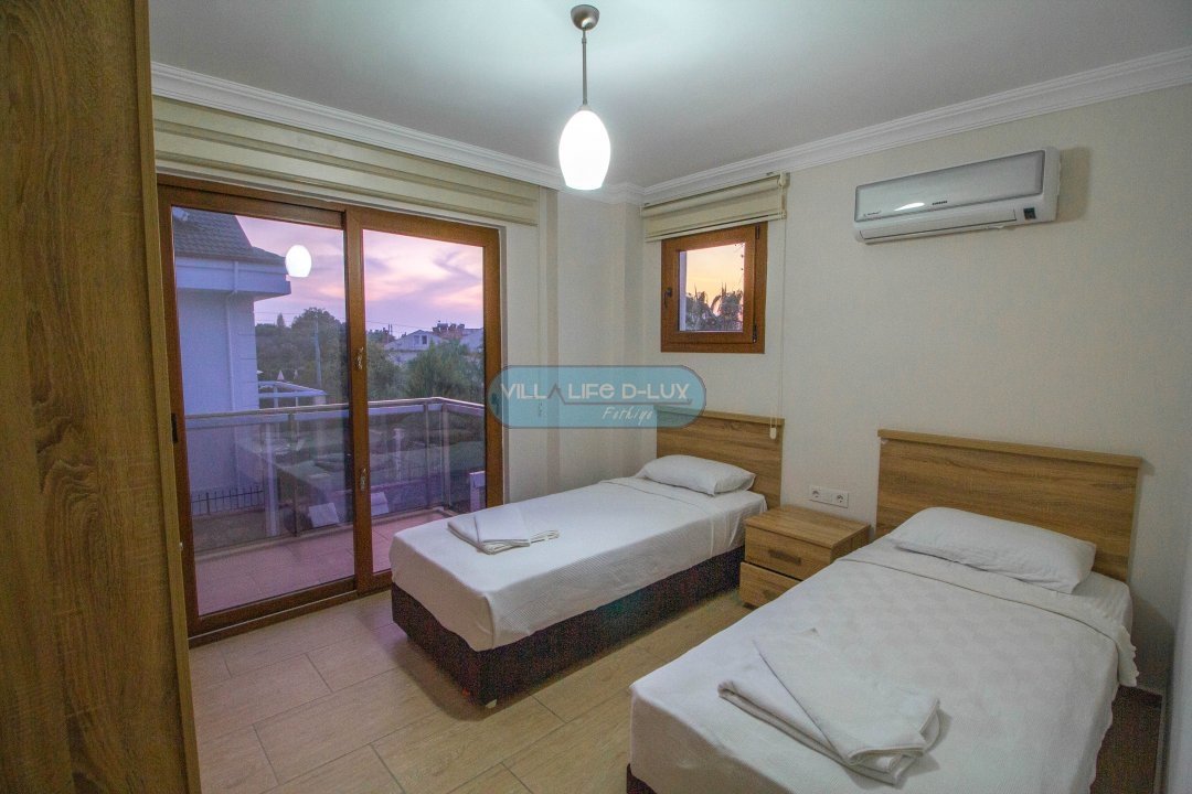 Villamızın içerisinde dört adet yatak odası ve dört adet banyo bulunmaktadır. Yatak odalarının iki tanesinde çift kişilik yataklar, diğer yatak odasında ise iki adet tek kişilik yatak bulunmaktadır. Tüm odaların içerisinde klima ve ebeveyn banyosu bulunmaktadır. Ortak alanda salon, mutfak, klima ve televizyon bulunmaktadır. Villamızın havuzu dışarıdan görünmemektedir. Bu özelliği ile muhafazakar aileler için uygun bir seçenektir.