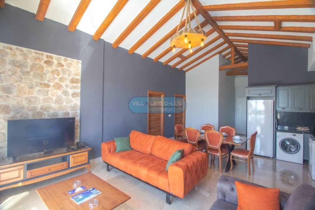 Taş ve ahşap yapıdan oluşmakta olan villamızın içerisi ultra lüks hazırlanmış olup villamız 3 oda, açık plan mutfak ve salon şeklinde dizayn edilmiştir. Villamızın kendine ait korunaklı özel havuzu bulunmaktadır. Havuzun derinliği 1.40cm-150cm aralığında eğimlidir. Havuzumuzun etrafı branda sistemiyle kapatılmış olup korunaklı yapısı ile aileniz ile birlikte gözlerden uzak bir tatil geçirmenize olanak sağlamaktadır.