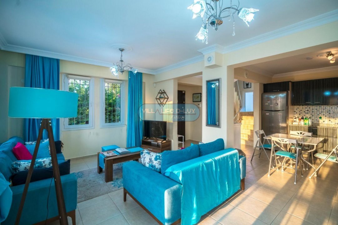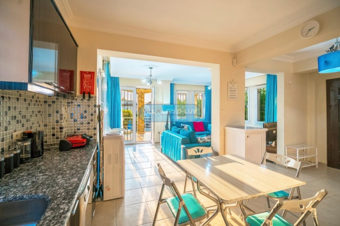Salon; Modern tasarımlı, özenle dizayn edilmiş salonda şık ve rahat bir oturma grubu, yemek masası ve sandalyeler, televizyon, uydu alıcı, klima bulunmaktadır. Salondan havuz kenarına direkt çıkış bulunmaktadır.