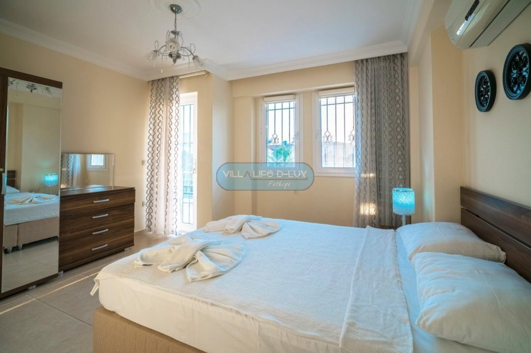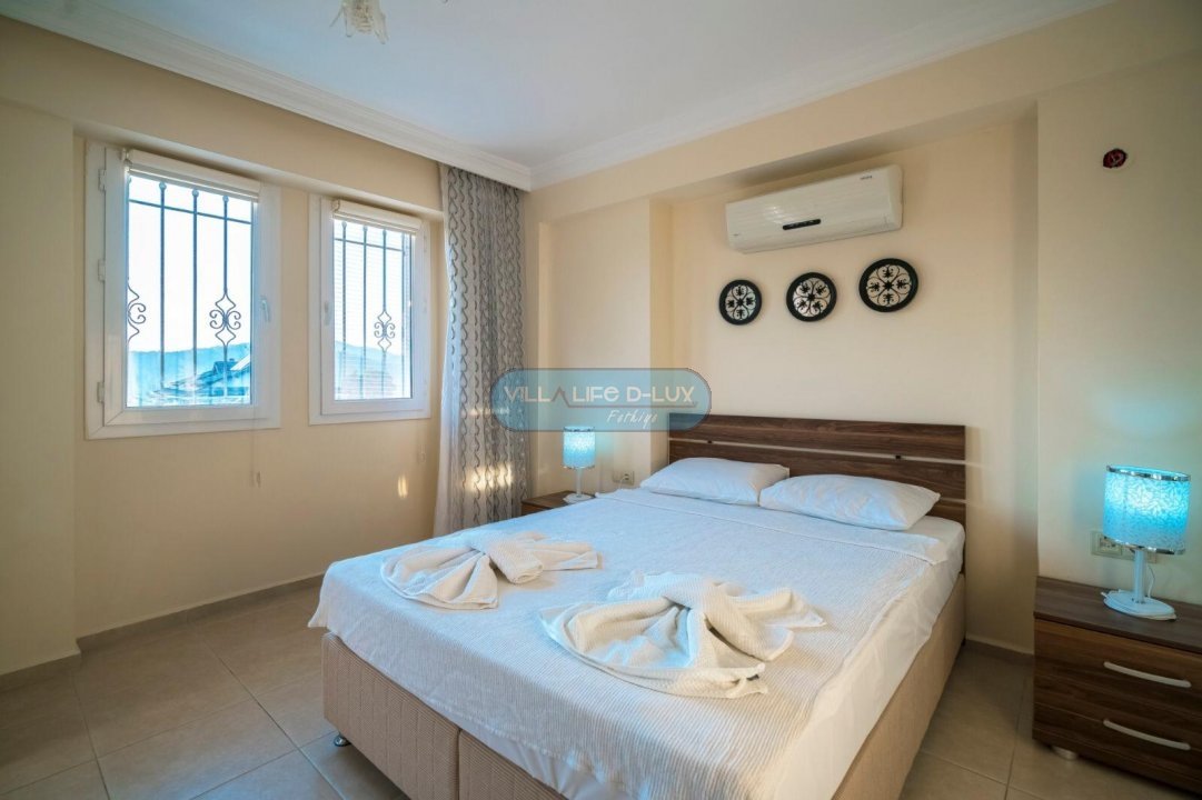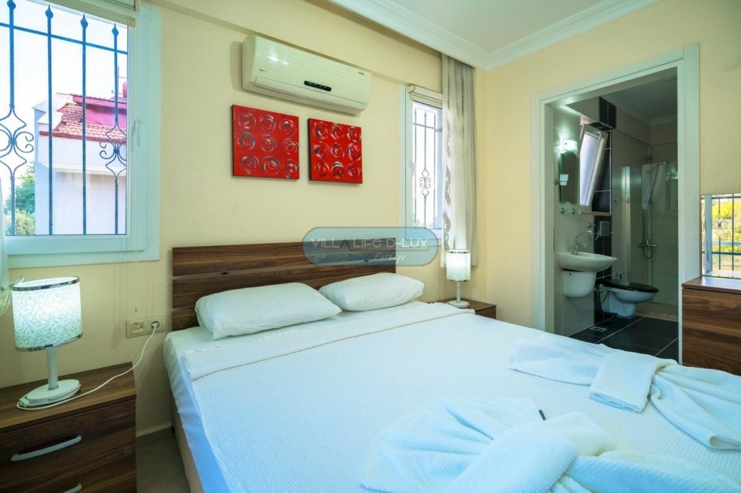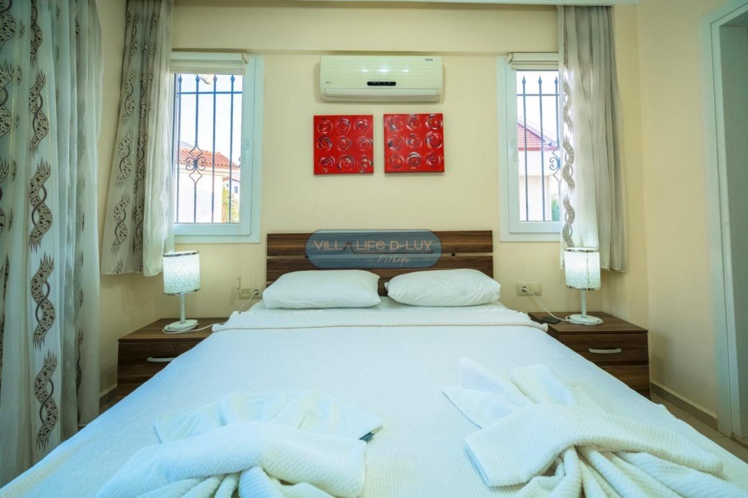 3.Yatak odası 1 çift kişilik yatak + elbise dolabı + komodin + banyo (ortak) bulunmaktadır.