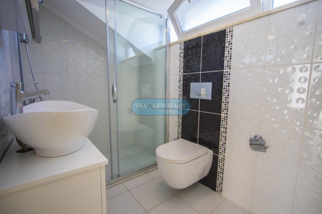 Salon; Modern tasarımlı, özenle dizayn edilmiş salonda şık ve rahat bir oturma grubu, yemek masası ve sandalyeler, televizyon, uydu alıcı, klima bulunmaktadır. Salondan havuz kenarına direkt çıkış bulunmaktadır.