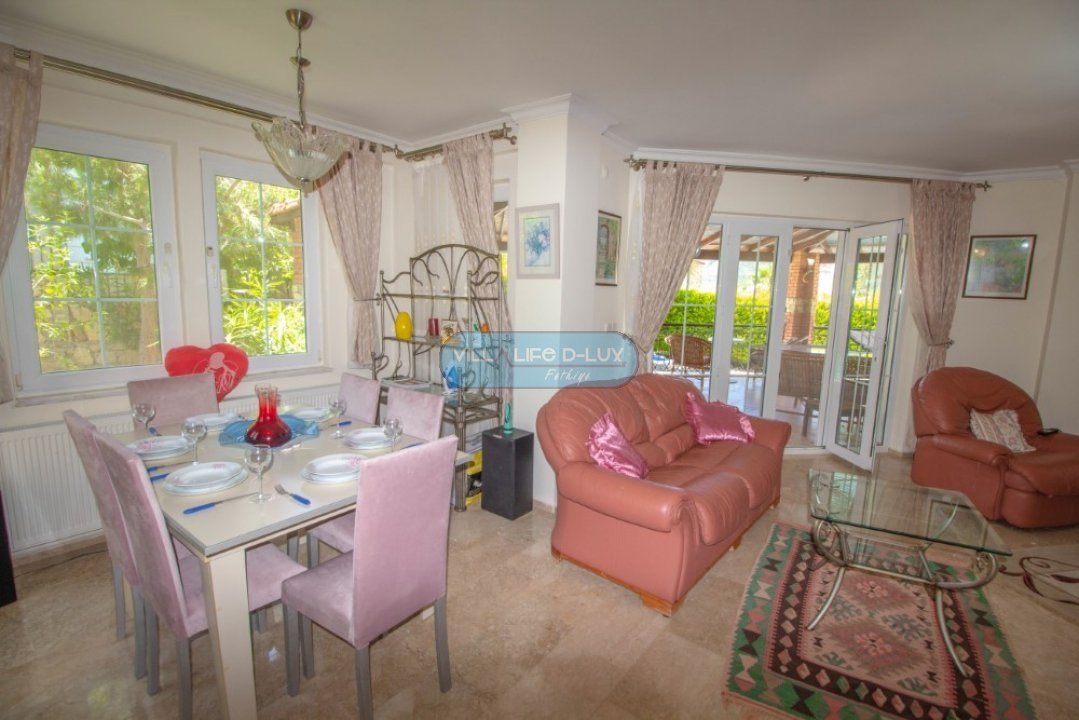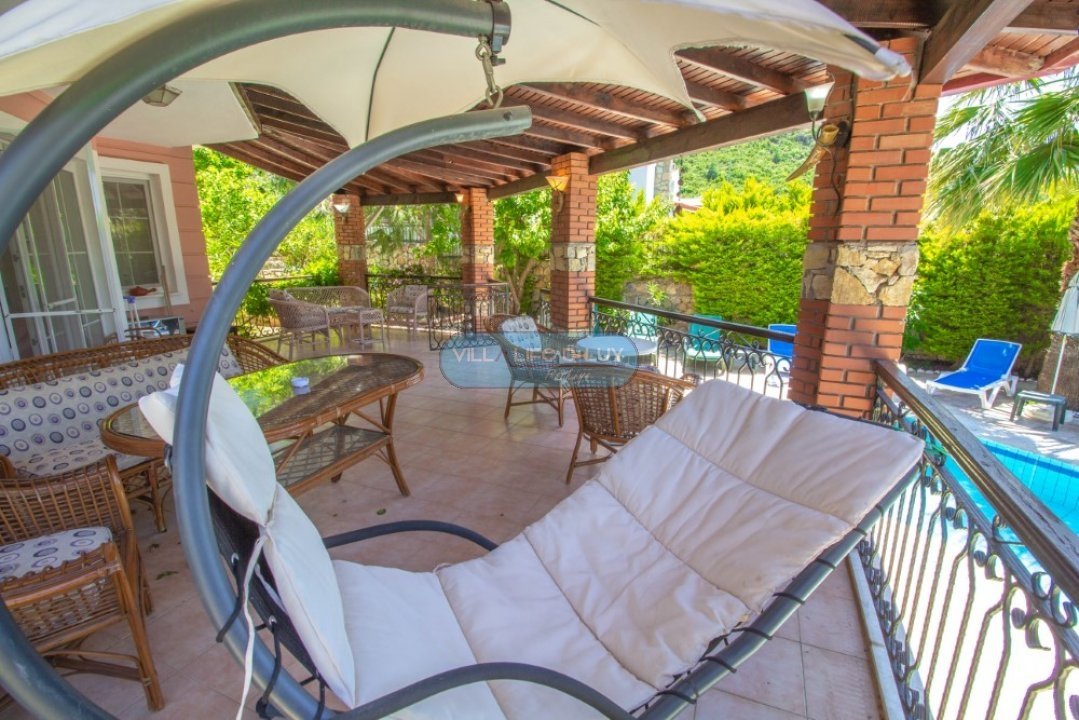Villa Kelebek, cennet gibi doğası,tarih dokusuyla ünlü tatil beldemiz Fethiyenin Ovacık mevkisindedir. Villamızın içinizi açan çiçekli, özel bahçesinde ve özel havuzunda keyif yapabilir, dilerseniz aracınızla 2006 yılında Dünyanın en güzel plajı seçilen Ölüdenize, dünya mutfakları ve çarşısı ile meşhur Hisarönüne aracınızla kısa sürede ulaşıp tatilinizi renklendirebilirsiniz. Villamız 3 odalı, 2 banyolu, 6 kişi kapasitelidir. Villamızın kendisine özel havuzunda yemyeşil doğa manzarasıyla harika zamanlar sizi bekliyor. Salon; Modern tasarımlı, özenle dizayn edilmiş salonda şık ve rahat bir oturma grubu, yemek masası ve sandalyeler, televizyon, uydu alıcı, klima bulunmaktadır. Salondan havuz kenarına direkt çıkış bulunmaktadır. Mutfak; Modern Amerikan mutfakta buzdolabı, çamaşır makinesi, bulaşık makinesi, fırın, ankastre 4′ lü ocak, elektrikli su ısıtıcısı, yemek takımı, çaydanlık, çatal bıçak seti, tavalar, tencereler, bardaklar bulunmaktadır. Havuz; Tamamen villada konaklayacak olanlara ait özel yüzme havuzu bulunmaktadır. Bahçe; Havuz başında güneşlenme terası, şezlong ve şemsiyeler, mangal bulunmaktadır. Yatak Odaları: 1.Yatak Odası: 1 Çift kişilik yatak, elbise dolabı, komodin, ebeveyn banyosu, ve balkon bulunmaktadır. 2. Yatak Odası: 1 Çift kişilik yatak, elbise dolabı, komodin, banyo (ortak) ve balkon bulunmaktadır. 3. Yatak Odası: 2 Tek kişilik yatak, elbise dolabı, komodin, banyo (ortak) ve balkon bulunmaktadır. Villamız 6 kişi kapasitelidir. Su, elektrik kullanımı, giriş temizliği, havuz ve bahçe bakımı fiyata dahildir. Fiyatlar konaklama tarihine göre değişiklik gösterebilir. Lütfen güncel fiyatlar için bizimle iletişime geçiniz. Hasar Depozitosu: Villaya girişte hasar, zayi, kırık, dökük vb. için nakit olarak 1000 TL hasar depozitosu alınacaktır. Herhangi bir sıkıntı olmadığı takdirde villa çıkışında hasar depozitosu nakit olarak iade edilecektir. Not: Evcil hayvanları çok seviyoruz ama maalesef hijyen ve alerjik durumdan dolayı kabul edemiyoruz.