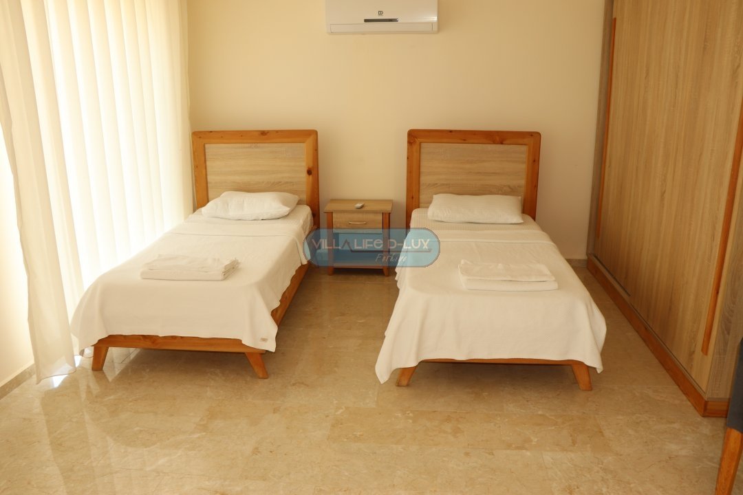 5.yatak odası : Klima, 1 adet çift kişilik yatak, elbise dolabı yer almaktadır. Banyo ve wc koridordadır.