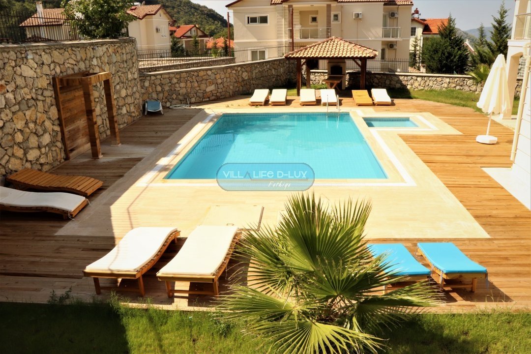 Villa Derek 5; Dünyaca ünlü tatil cenneti Ölüdenize 3 km mesafede, Hisarönü merkeze yürüme mesafesinde, 5 yatak odalı ve 10 kişi konaklama kapasiteli, özel havuzlu, çok özel bir tripleks tatil villasıdır. Villamızın 2 adet salonu, 2 adet de mutfağı bulunmaktadır. Muhteşem doğa manzaralı, Şık tasarımlı villamızda misafirlerimizin keyifli ve konforlu bir tatil geçirmeleri için her türlü ayrıntı düşünülmüş olup, geniş bahçesi ve özel havuzuyla eşsiz bir tatil imkanı sunmaktadır.