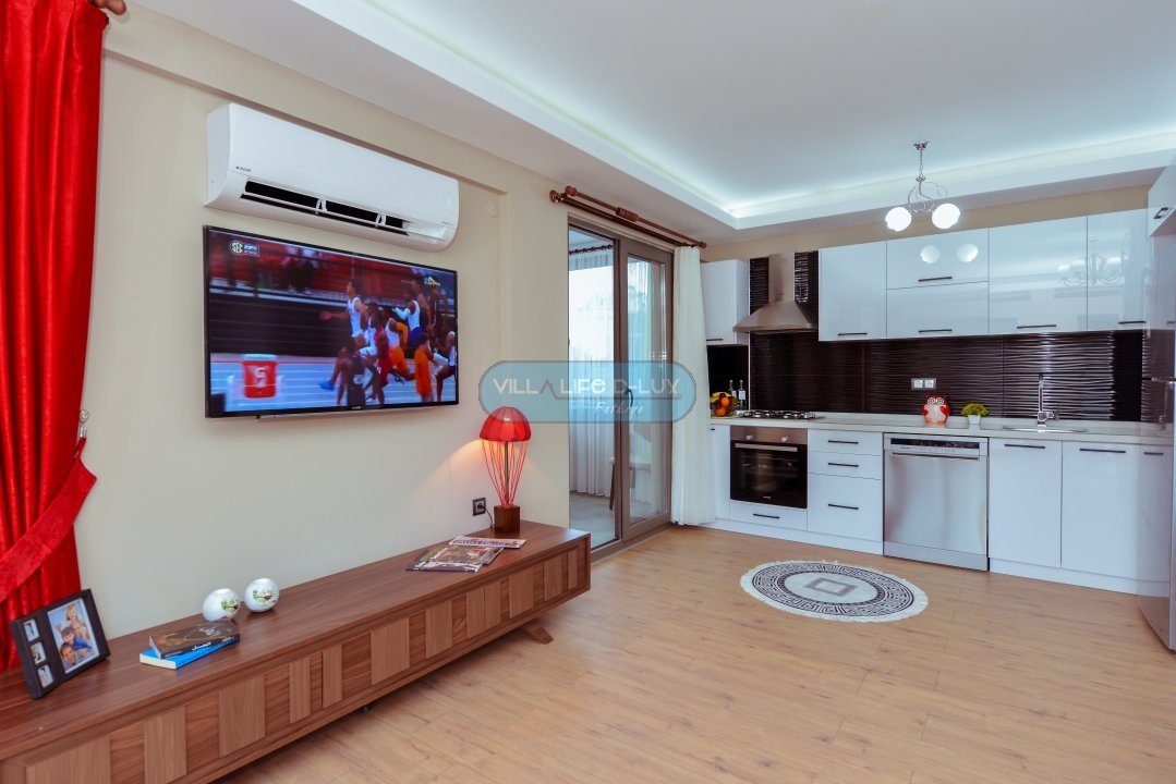Salon:Açık plan mutfak, Oturma grubu, Yemek Masası,Lcd Tv,Klima bulunmaktadır.