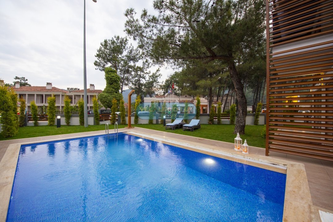 Ayrıca geniş bir bahçe içerisinde bulunan özel yüzme havuzuna sahiptir.