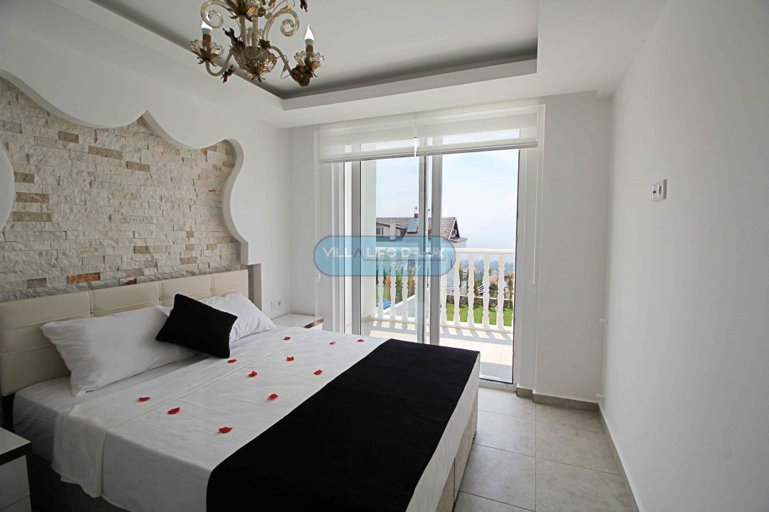 1. Yatak Odası:Ana yatak odamız bir adet çift kişilik yataktan oluşmaktadır .Oda da ayrıca klima, makyaj masası, jakuzili banyo bulunmaktadır. Balkondan deniz gözükmektedir.