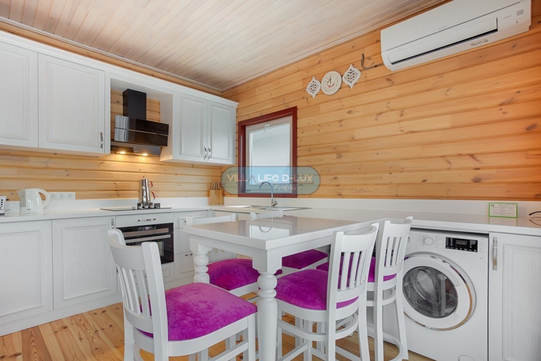 Mutfak; Modern Amerikan Mutfak, bulaşık makinesi, çamaşır makinesi, buzdolabı, 4‘lü ocak, fırın, elektrikli su ısıtıcı (kettle), tencere, tavalar, 2 kişilik yemek takımı, çatal bıçak takımı, çay, kahve ve su bardakları mevcuttur.