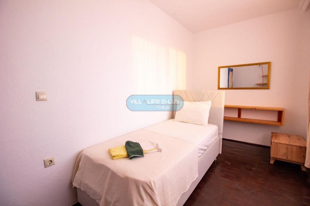 Villa Ephesus, doğa güzelliği ve tarihi kalıntılarıyla meşhur tatil beldemiz Ölüdenizin Faralya bölgesinde bulunmaktadır. Villamızın büyüleyici bir deniz manzarası vardır. 5 yatak odası, 3 banyosu, 6 kişilik kapasitesi bulunan, 2020 sezonunda yeni hizmete sunulmuş olan villamızın oldukça geniş güneşlenme terası ve bahçesi, yaklaşık 50 m2’lik çatı terası ve ferah bir yüzme havuzu bulunmaktadır. Kalabalık aileler ve arkadaş grupları, gözlerden uzak sakin bir villa tatili isteyen misafirlerimiz için oldukça ideal bir villadır. Villamız Ölüdeniz merkeze 10 km. mesafededir. Not : Villa Ephesus’da bebek yatağı mevcuttur. Not : Villa Ephesus 1 ve Villa Ephesus 2, yan yana konumlu villalardır. Birlikte 2 villa kiralamak isteyen aileler için ideal bir tatil villasıdır. Salon : Geniş ve konforlu oturma grubu, uydu alıcı, LCD TV, klima, banyo/WC ve internet için modem bulunmaktadır. Mutfak : İçerisinde buzdolabı, bulaşık makinesi, çamaşır makinesi, ankastre fırın, ankastre 4’lü ocak, elektrikli su ısıtıcısı, çay makinesi, 10 kişilik yemek takımı, tava, tencereler, çatal, bıçak takımı bulunmaktadır. Havuz : Deniz manzaralı özel yüzme havuzu bulunmaktadır. Havuz boyutları; uzunluk 7 m metre, genişlik 3.50 metre, derinlik 1.50 metredir. Havuz ve bahçe bakımı günde 1 kez sabah veya akşam yapılmaktadır. Havuz kenarında güneşlenme terası vardır. Bahçe : Deniz manzaralı bahçede, 4 adet şezlong, güneş şemsiyesi, sedir, hamak, barbekü, 8 kişilik yemek masası ve sandalyeler bulunmaktadır. Yatak Odaları: : Villamızda 5 adet yatak odası bulunmakta olup tüm odalarda serinleme için tepe vantilatörü bulunmaktadır. 1. Yatak Odası : Genç yatak odası olup, 2 adet tek kişilik yatak, kıyafetleriniz için duvarda raflar, tepe vantilatörü, lambader ve ORTAK KULLANIM banyo/WC bulunmaktadır. (Giriş katı) 2. Yatak Odası : Aile yatak odası olup, 1 adet çift kişilik yatak, kıyafetleriniz için duvarda raflar, tepe vantilatörü, ayna ve ORTAK KULLANIM banyo/WC bulunmaktadır. (1. kat) 3. Yatak Odası : Aile yatak odası olup, 1 adet çift kişilik yatak, kıyafetleriniz için duvarda raflar, tepe vantilatörü, ayna ve ORTAK KULLANIM banyo/WC bulunmaktadır. (1. kat) 4. Yatak Odası : Genç yatak odası olup, 1 adet tek kişilik yatak, kıyafetleriniz için duvarda raflar, tepe vantilatörü ve ORTAK KULLANIM banyo/WC bulunmaktadır. (1. kat) 5. Yatak Odası : Suit Aile yatak odası olup, 1 adet çift kişilik yatak, kıyafetleriniz için duvarda raflar, tepe vantilatörü, lambader, banyo/WC ve terasa çıkış bulunmaktadır. (Çatı katı) İnternet : Villada Wi-Fi bulunmaktadır. Bölgenin alt yapısı sebebiyle internet servis sağlayıcılarından kaynaklanan kesitiler yaşanabilmektedir. İnternet kullanımı; mailler, sosyal medya hesapları, gazete ve haber sitelerine girme gibi hususlarda yeterli olup film ve video izleme, dosya indirme gibi kullanımda yeterli değildir. Ekstralar : Villamızda internet bulunmaktadır. Villa temiz bir şekilde teslim edilmektedir. Villa temizliği ise haftada 1 kez yapılmaktadır. Önemli Bilgiler : Elektrik, su, gaz ücretleri villa kiralama fiyatına dahildir. Ayrıca bir ücret talep edilmemektedir. Ekstra temizlik, ekstra yeni çarşaf ve havlu, kiralık araç, rehberlik hizmetleri, sağlık vs. sigortaları fiyatlara dahil değildir. Doğa içerisinde konuma sahip olan tüm villalarımızda düzenli olarak ilaçlama yapılmaktadır. Buna rağmen çevrede; kelebek, böcek, sinek vs. bulunma ihtimali vardır. Faralya; coğrafi yapısı bakımından, yamaç üzerine kurulmuş bir yerleşim yeridir. Faralya ve çevresindeki köylerde bulunan tüm yazlıklarımıza ulaşmak için, yokuş yukarı çıkılmaktadır. Faralya Köyü sakin bir yerleşim yeridir. (Köydür) Villamız 6 kişi kapasitelidir. Su,elektrik kullanımı, giriş temizliği, havuz ve bahçe bakımı fiyata dahildir. Fiyatlar konaklama tarihine göre değişiklik gösterebilir.Lütfen güncel fiyatlar için bizimle iletişime geçiniz. Hasar Depozitosu: Villaya girişte hasar, zayi, kırık, dökük vb. için nakit olarak 2000 TL hasar depozitosu alınacaktır. Herhangi bir sıkıntı olmadığı takdirde villa çıkışında hasar depozitosu nakit olarak iade edilecektir. Not: Evcil hayvanları çok seviyoruz ama maalesef hijyen ve alerjik durumdan dolayı kabul edemiyoruz