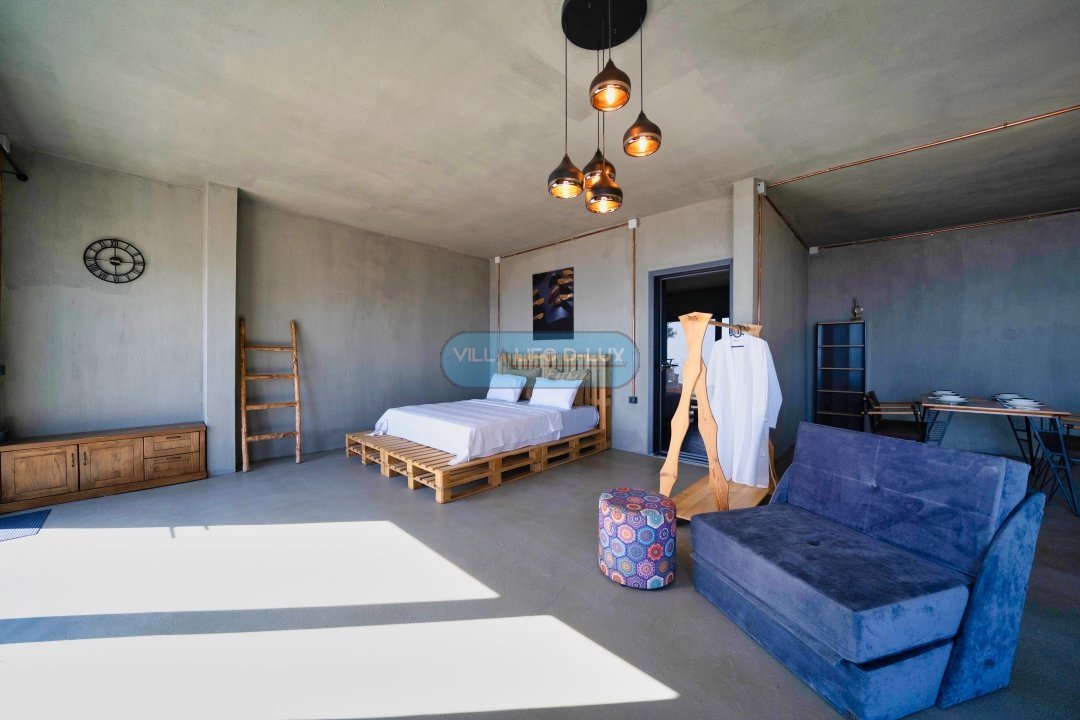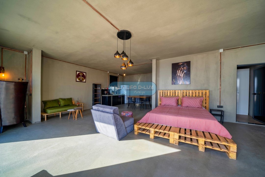 1. Yatak Odası: Bir oturma odası ve bir açık mutfak vardır. 1 adet çift kişilik yatak, gardırop, komodin, ebeveyn banyo ve oturma odası bulunmaktadır.