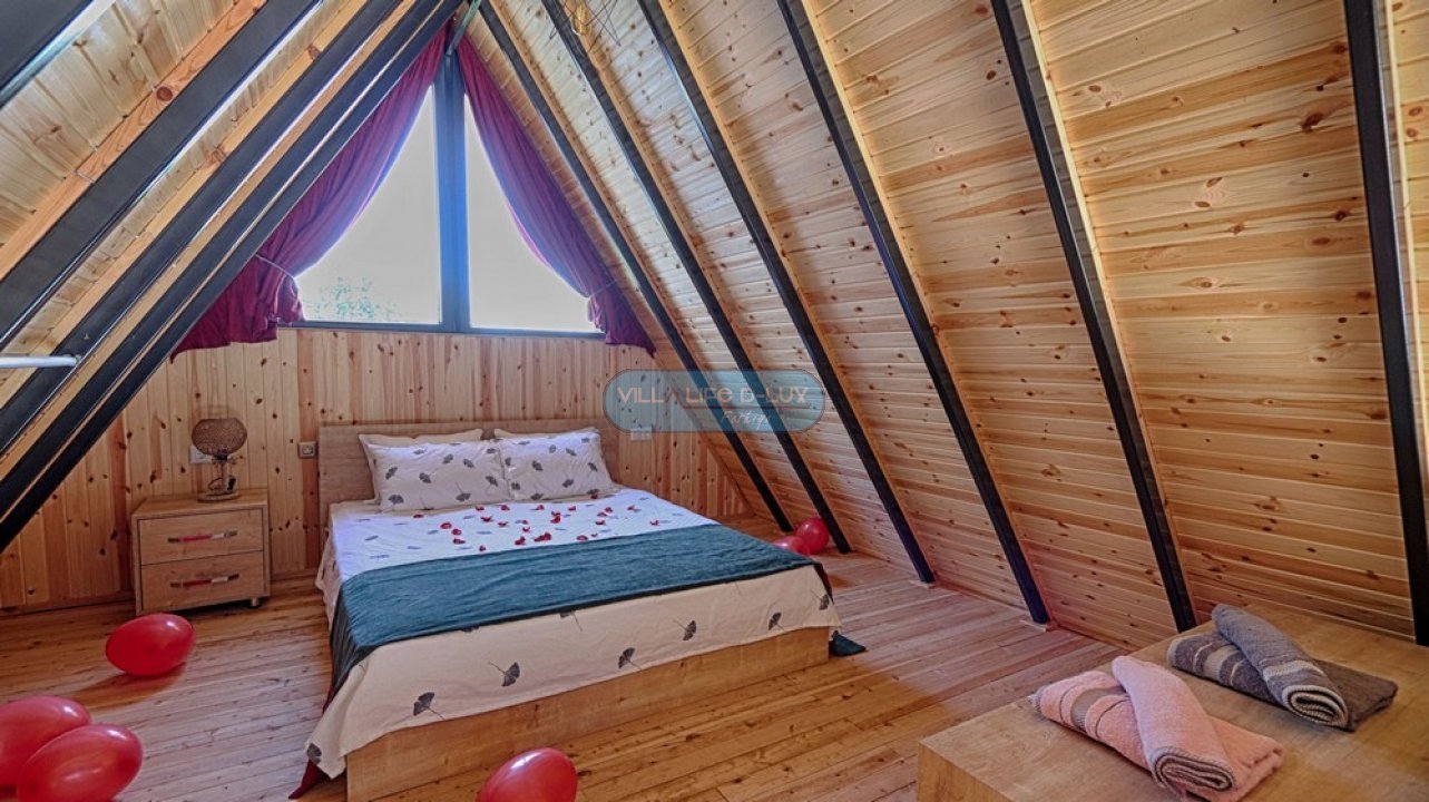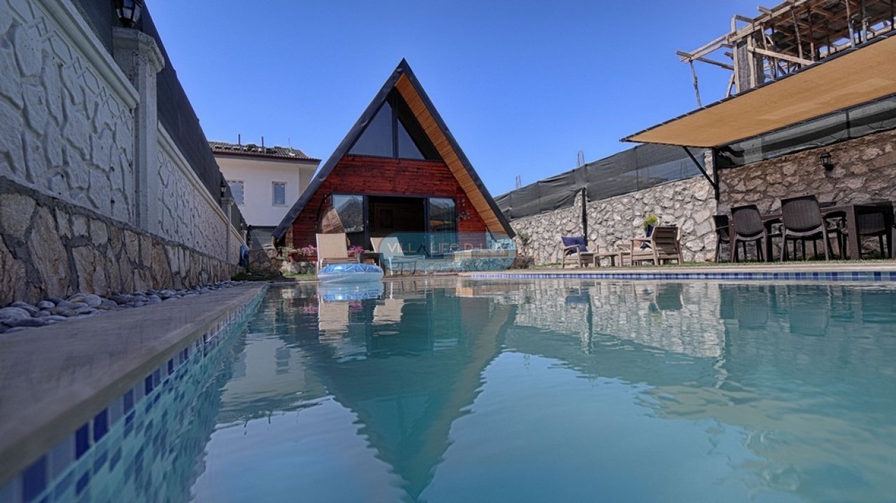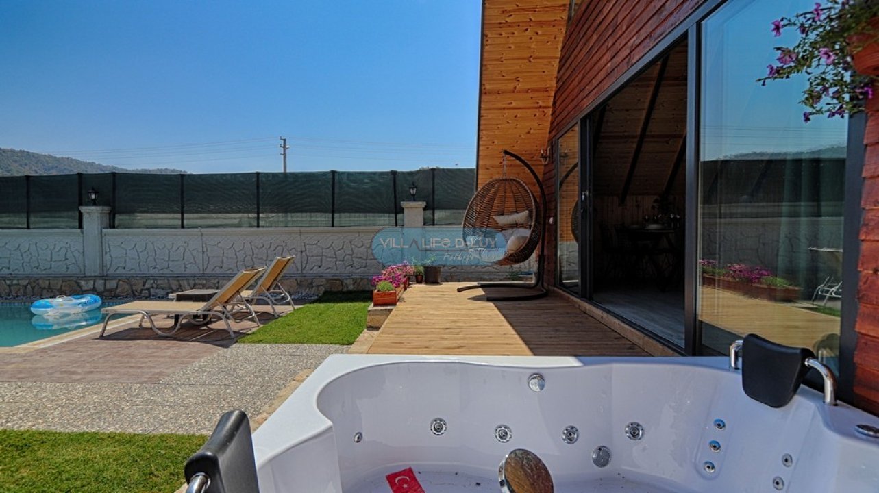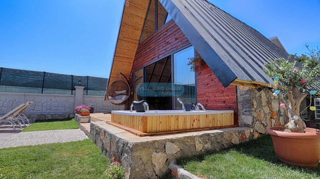 Villa Piramit; Fethiye Karagedik mevkiinde konumlanmış, ahşap üçgen mimarisiyle dikkat çeken, kendi özel bahçesi içinde özel havuzu ve bahçe içinde jakuzisi olan, modern iç dizayna sahip huzurlu ve şirin bir tatil villamızdır. Biri asma katta olmak üzere 2 adet yatak odasına sahip olan villamız 4 kişi konaklama kapasitelidir. Villamız bahçesi, özel havuzu, bahçesinde jakuzisiyle misafirlerimize unutulmaz bir tatil imkanı sunmaktadır. Salon : Zevkle dizayn edilmiş salonumuzda rahat ve şık bir oturma grubu, televizyon, uydu alıcısı, internet erişimi için wi-fi, klima, yemek masası ve sandalyeler bulunmaktadır. Mutfak : Modern Amerikan mutfak içerisinde buzdolabı, çamaşır makinası, bulaşık makinası, fırın, 4lü ocak, kettle, kahve makinası, çaycı, tost makinası, yemek takımı, çatal bıçak seti, tencere ve tava takımı, bardaklar, mutfak araç ve gereçleri bulunmaktadır. Yatak odaları : Villamızda saç kurutma makinası, ütü, ütü masası , 1 adet ortak banyo ve banyoda elektrikli termosifon bulunmaktadır. 1.Yatak Odası: 1 adet çift kişilik yatak, elbise dolabı, komodin, klima, bebek yatağı bulunmaktadır. 2.Yatak Odası: Asma katta bulunan odamızda 1 adet çift kişilik yatak, komodin bulunmaktadır. Havuz : Özel havuzu bulunmaktadır. Havuz Ölçüleri; 6mx3m derinlik 1.55 m.dir. Bahçe : Özel bahçe içinde özel yüzme havuzu, 4 adet şezlong , güneş şemsiyesi, bahçe oturma grubu, cocuk oyun parkı, barbekü bulunmaktadır. İnternet : Villamızda internet erişimi için wi-fi bulunmaktadır. Bölgenin altyapısından dolayı internet servis sağlayıcılarından kaynaklanan ve sezon yoğunluğu sebebi ile aşırı kullanıcı yüklenmesinden dolayı kesintiler olabilmektedir. Hizmetimiz : Villamız temiz bir şekilde misafirlerimize teslim edilmektedir. Misafirlerimiz ekibimiz tarafından karşılanır ve villa anahtar teslimi yapılır. Konaklama süresince bölge hakkında bilgilendirme dahil, herhangi bir konuda, hiç çekinmeden bizden destek alabilirsiniz. Villamızda minimum konaklama süresi 5 gece olup, 5 gece ve altı konaklamalarda 300 TL temizlik ücreti talep edilmektedir. Hasar Depozitosu: Hasar, zayi, kırık, dökük vs. için girişte 500 TL depozito alınmaktadır. Herhangi bir kırık, dökük, zarar, ziyan, kayıp gibi sorun olmadığında depozito, villa çıkışında ekibimiz tarafından iade edilmektedir. Not: Villalarımız genelde doğa içerisinde bulunduğundan, doğal yaşam sürprizleri (sinek,böcek,arı vb)ile karşılaşma ihtimaliniz olabilir.