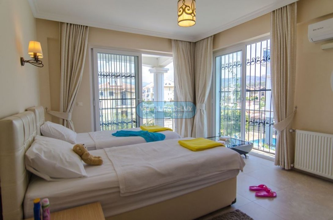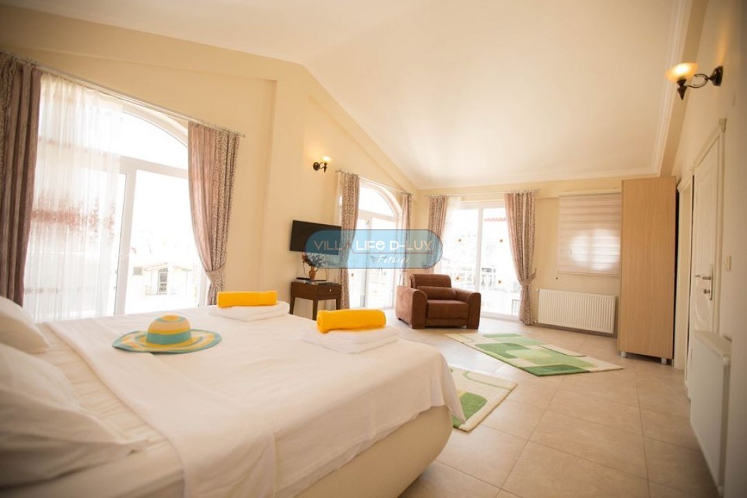 Salon; Modern tasarımlı, özenle dizayn edilmiş salonda şık ve rahat bir oturma grubu, yemek masası ve sandalyeler, televizyon, uydu alıcı, klima bulunmaktadır. Salondan havuz kenarına direkt çıkış bulunmaktadır.