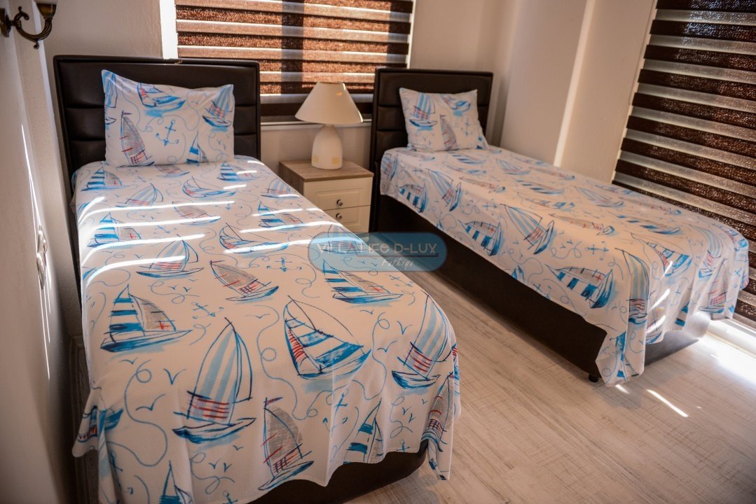 2. Yatak Odası: 2 tek kişilik yatak + komodin + elbise dolabı + ortak banyo bulunmaktadır.