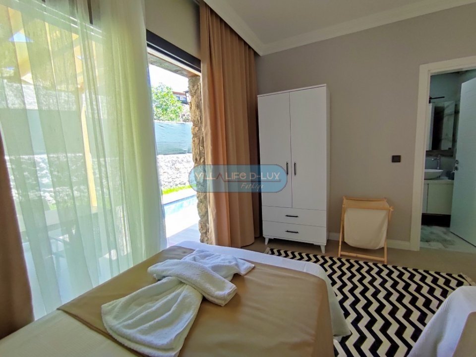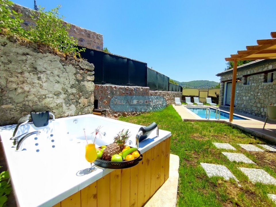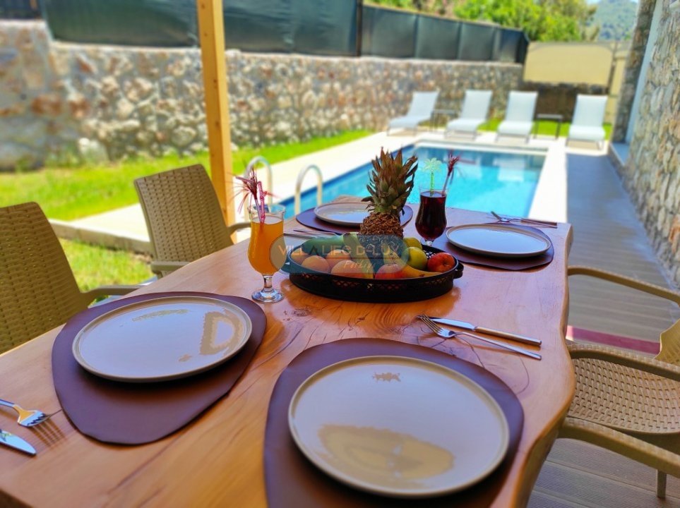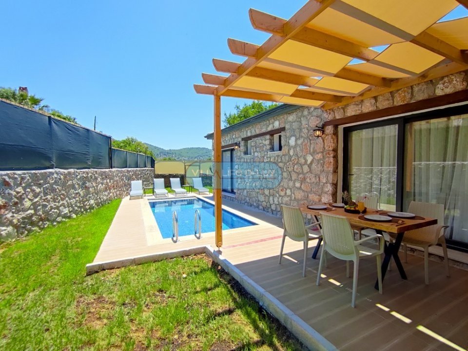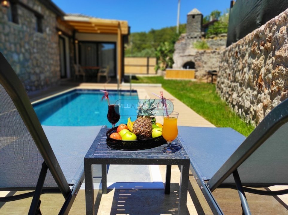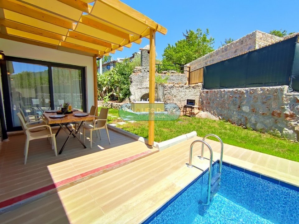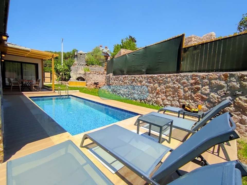 Villamız 2021 senesinde tamamlanmış olup ilk defa misafirlerine kapılarını açmaktadır. Villa Antik Kayaköy 2 yatak odalı, 2 ebeveyn banyosu ve 1 wc ye sahiptir. Villamız müstakil havuzlu olup kullanımı sadece size aittir. Havuz başında bulunan jakuzide tarihin ve doğanın manzarası ile keyfinizi sürdürebilirsiniz. Havuz başın aynı zamanda mangal ve sınırsız internet mevcuttur. Bir mutfakta olması gerek tüm donanımlar mevcuttur. Salonda Smart TV vardır. Tüm odalar klimalıdır.