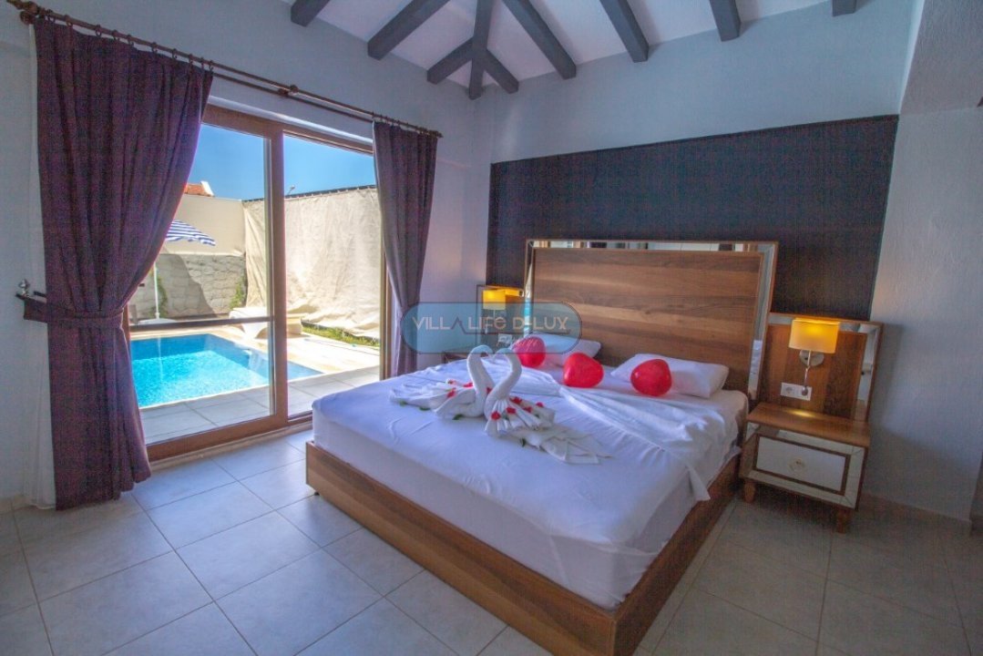 Taş ve ahşap yapıdan oluşmakta olan villamızın içerisi ultra lüks hazırlanmış olup villamız 1 oda 1 açık plan mutfak şeklinde dizayn edilmiştir. Villamızın kendine ait 40m² özel havuzu bulunmaktadır. Havuzun derinliği 1.40cm-150cm aralığında eğimlidir. Havuzumuzun etrafı branda sistemiyle kapalı olup ailenizle rahatlıkla havuz keyfi yapmanızı sağlar.