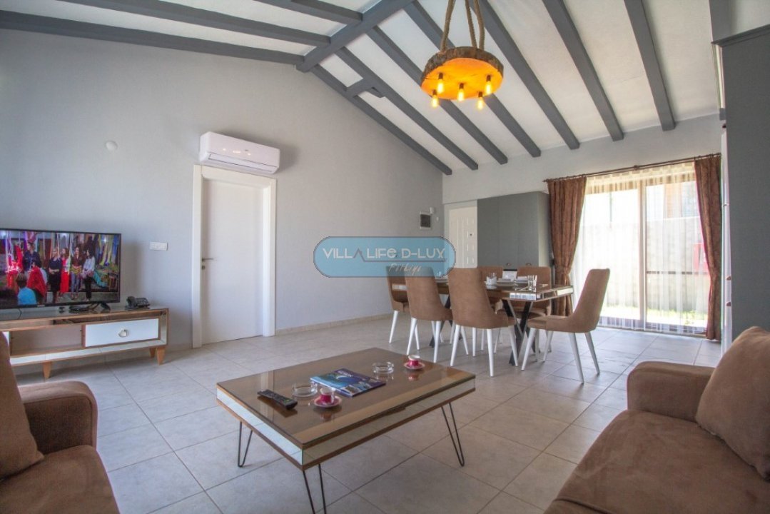 Salon: Açık plan mutfak şeklinde dizayn edilmiş salonumuzda havuz terasına direkt geçiş imkanı bulunmaktadır.