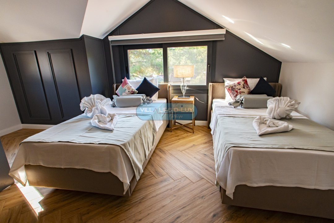 7.Yatak Odası: Çatı katında yer almaktadır. Ebeveyn banyolu oda, 2 adet tek kişilik yatak, elbise dolabı, komodin, buzdolabı, LCD TV, saç kurutma makinesi, emanet kasası ve klima bulunmaktadır.
