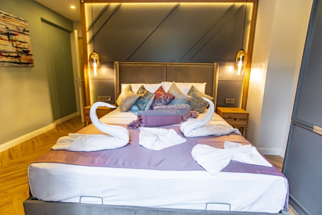 4.Yatak Odası : Giriş katında yer almaktadır. Ebeveyn banyolu oda, 1 adet çift kişilik yatak, elbise dolabı, komodin, buzdolabı, LCD TV, saç krurtma makinesi, emanet kasası ve klima bulunmaktadır.