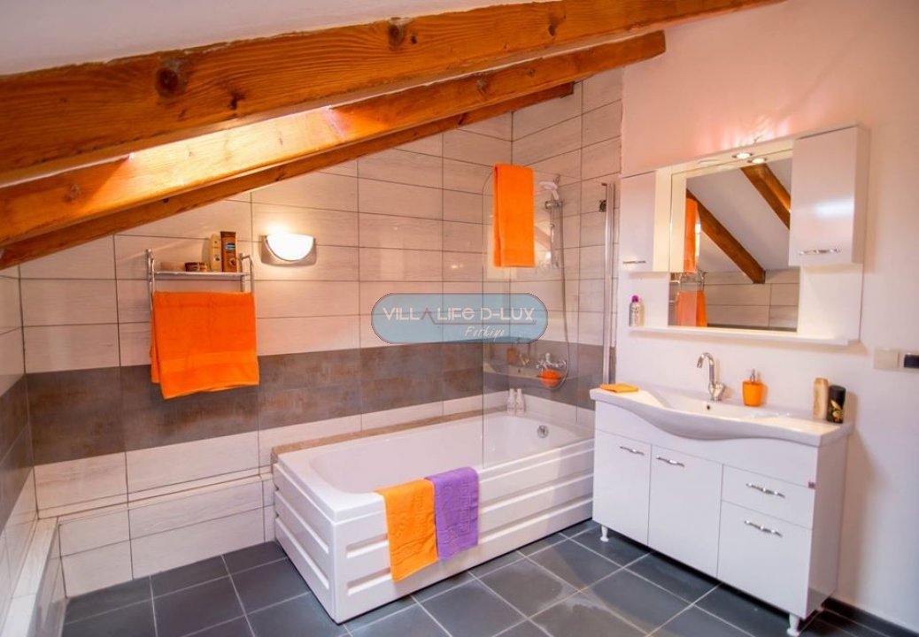 Villamızın 2 Ayrı Girişi Vardır. Alta kat girişinde 2 yatak odası 1 Banyo ve Amerikan mutfak bulunmaktadır.