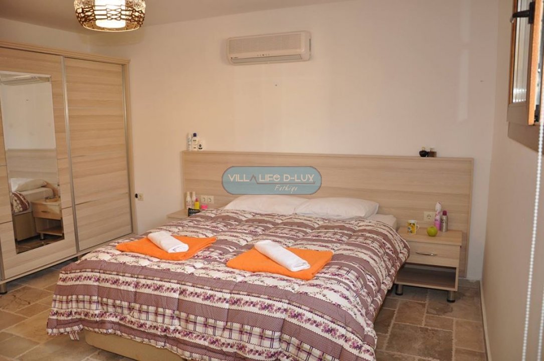 1. Yatak Odası: 1 Çift kişilik yatak, elbise dolabı, komodin, banyo (ortak) ve balkon bulunmaktadır.