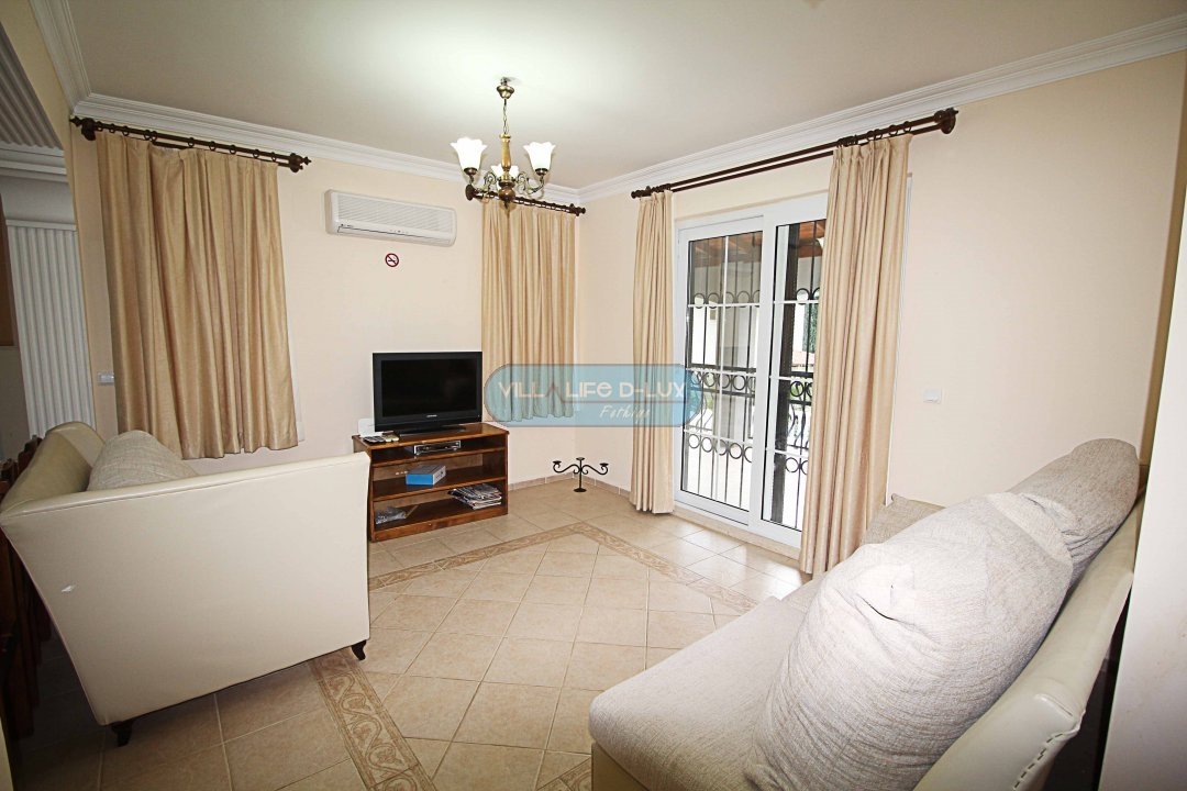 Salon; Modern tasarımlı , özenle dizayn edilmiş salonda şık ve rahat bir oturma grubu, yemek masası ve sandalyeler, televizyon, uydu alıcı, klima bulunmaktadır.