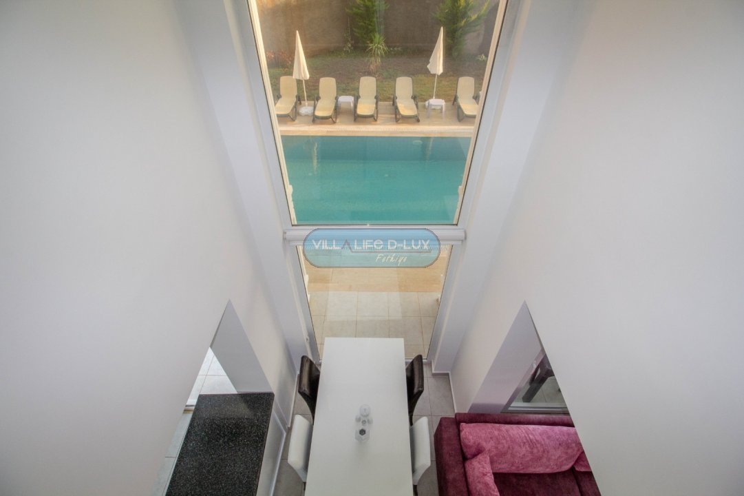 Bahçe: Oldukça geniş ve yeşil bir bahçe içerisinde özel havuz,havuz başı duş,6 adet şezlong, yeteri kadar şemsiye, yemek masası ve sandalyeler bulunmaktadır.