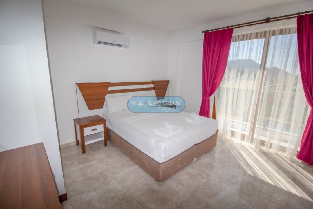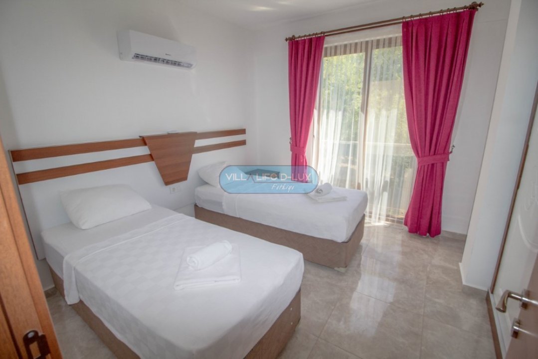 Villa Nisa çam ormanlarıyla çevrili doğa güzelliğiyle dünyaca ünlü Fethiyenin Ovacık mevkisinde bulunmaktadır. Doğayla iç içe olduğunuz gibi, Dünya mutfağından lezzetler sunan restoranlar, kafeler, barlar ve eğlence merkezleri ve alışveriş noktalarına sahip Hisarönüne dilediğiniz anda kolaylıkla aracınızla ulaşabilirsiniz.4 yatak odalı 8 kişilikli kapasiteye sahip villamız özenle dizayn edilmiş olup geniş ailelerin tercih sebebidir. Fethiyenin cennet doğasında, dağ manzarasının güzelliğiyle, size özel havuzunuzla muhteşem bir tatil geçireceğiniz özenle hazırlanmış tatil villamız sizi bekliyor. Salon; Modern tasarımlı, özenle dizayn edilmiş salonda şık ve rahat bir oturma grubu, yemek masası ve sandalyeler, televizyon, uydu alıcı, klima bulunmaktadır. Salondan havuz kenarına direkt çıkış bulunmaktadır. Mutfak; Modern Amerikan mutfakta buzdolabı, çamaşır makinesi,bulaşık makinesi, fırın, ankastre 4′ lü ocak, elektrikli su ısıtıcısı, yemek takımı, çaydanlık, çatal bıçak seti, tavalar, tencereler, bardaklar bulunmaktadır.