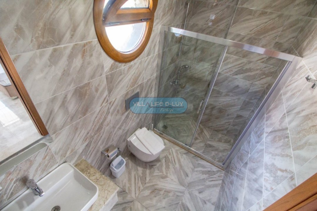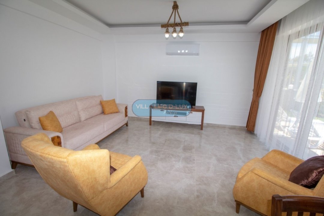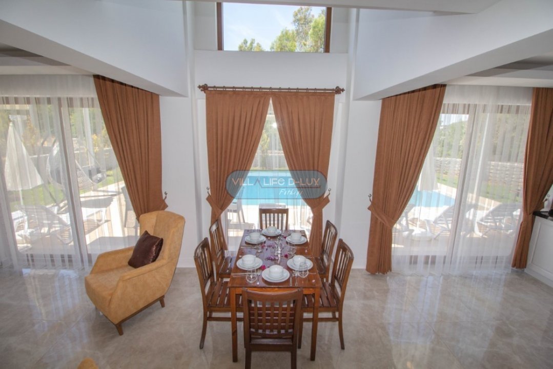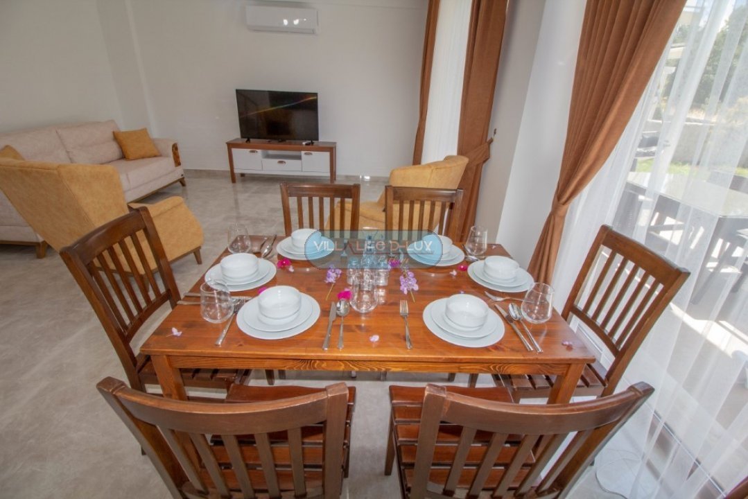 Salon; Modern tasarımlı, özenle dizayn edilmiş salonda şık ve rahat bir oturma grubu, yemek masası ve sandalyeler , televizyon, uydu alıcı, klima bulunmaktadır. Salondan havuz kenarına direkt çıkış bulunmaktadır.
